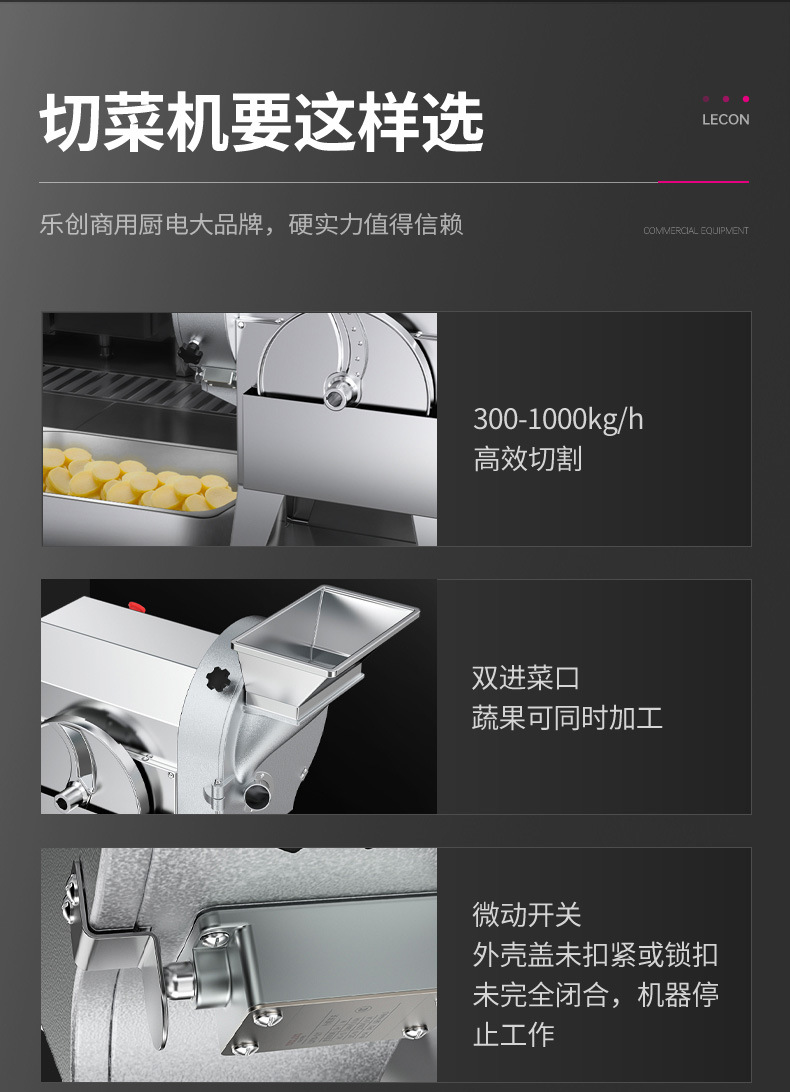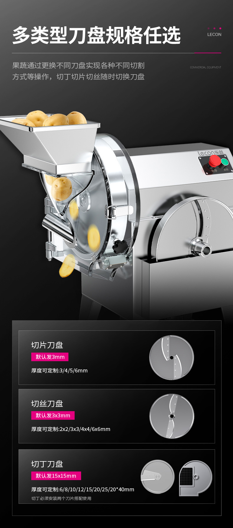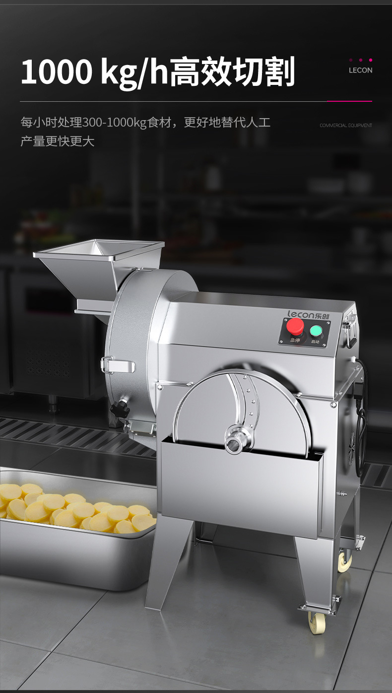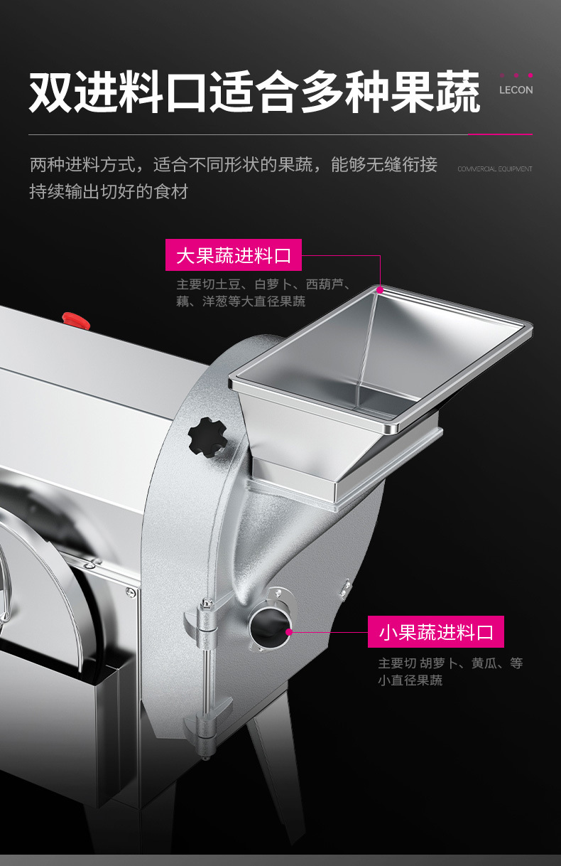 Lecchuang 상업용 야채 절단기, 과일 및 야채를 자동으로 처리하는 이중 급입구, 두꺼운 스테인레스 스틸 본체, 다기능 야채 절단기