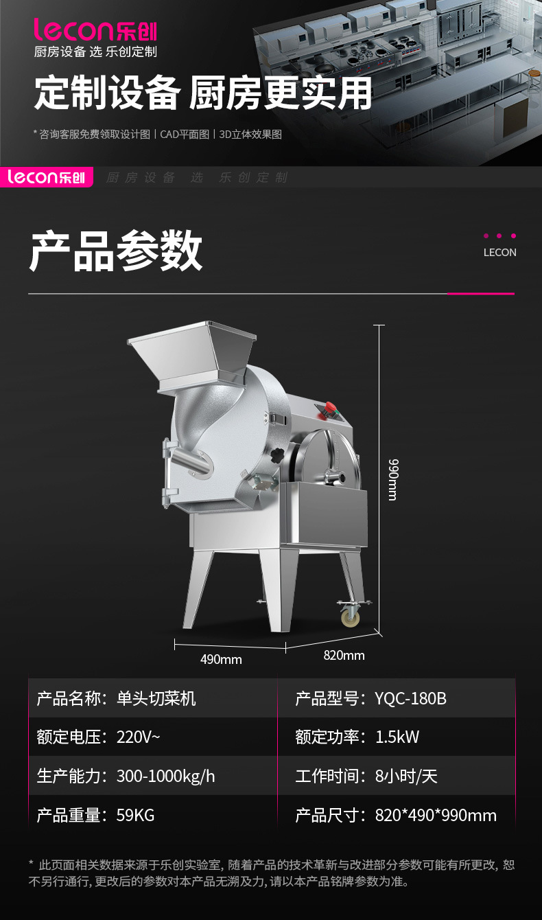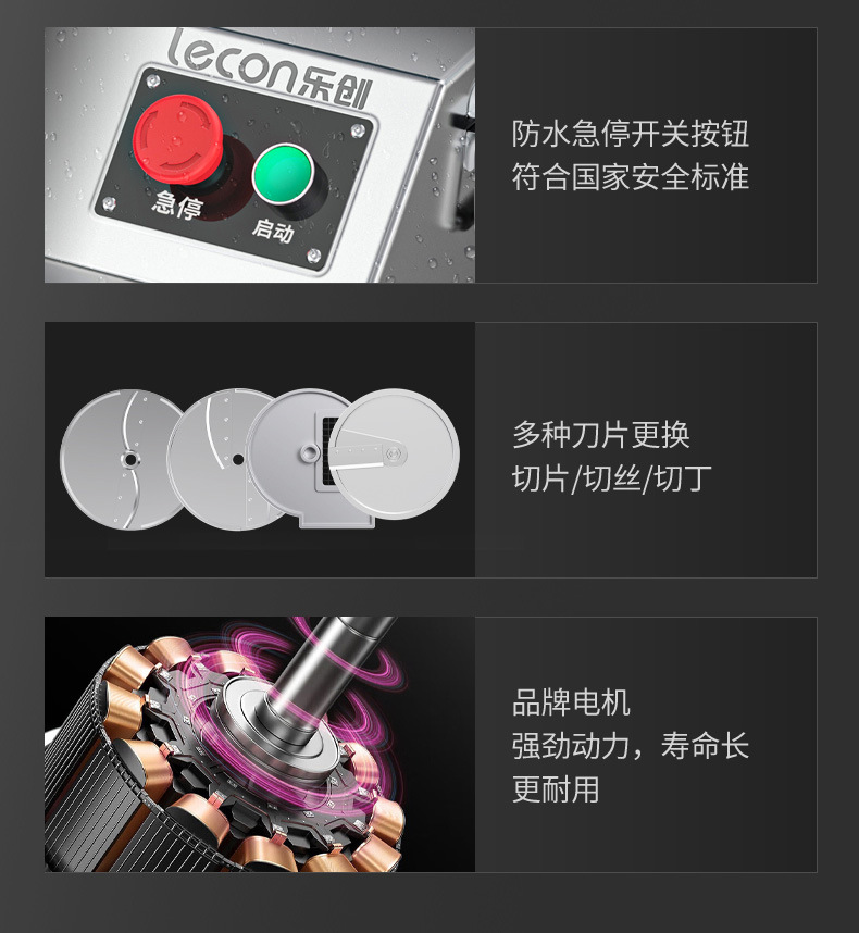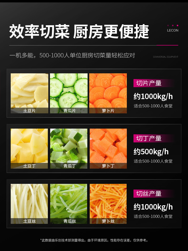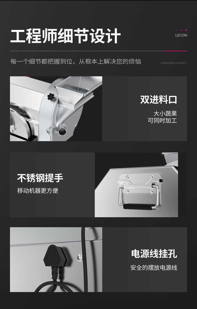Lecchuang 상업용 야채 절단기, 과일 및 야채를 자동으로 처리하는 이중 급입구, 두꺼운 스테인레스 스틸 본체, 다기능 야채 절단기