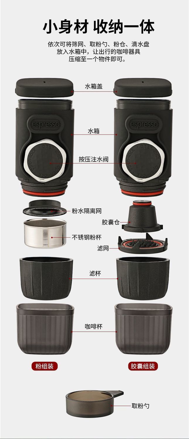 • 휴대용 핸드 프레스 커피 머신 블랙 캡슐/커피 파우더 이중 용도