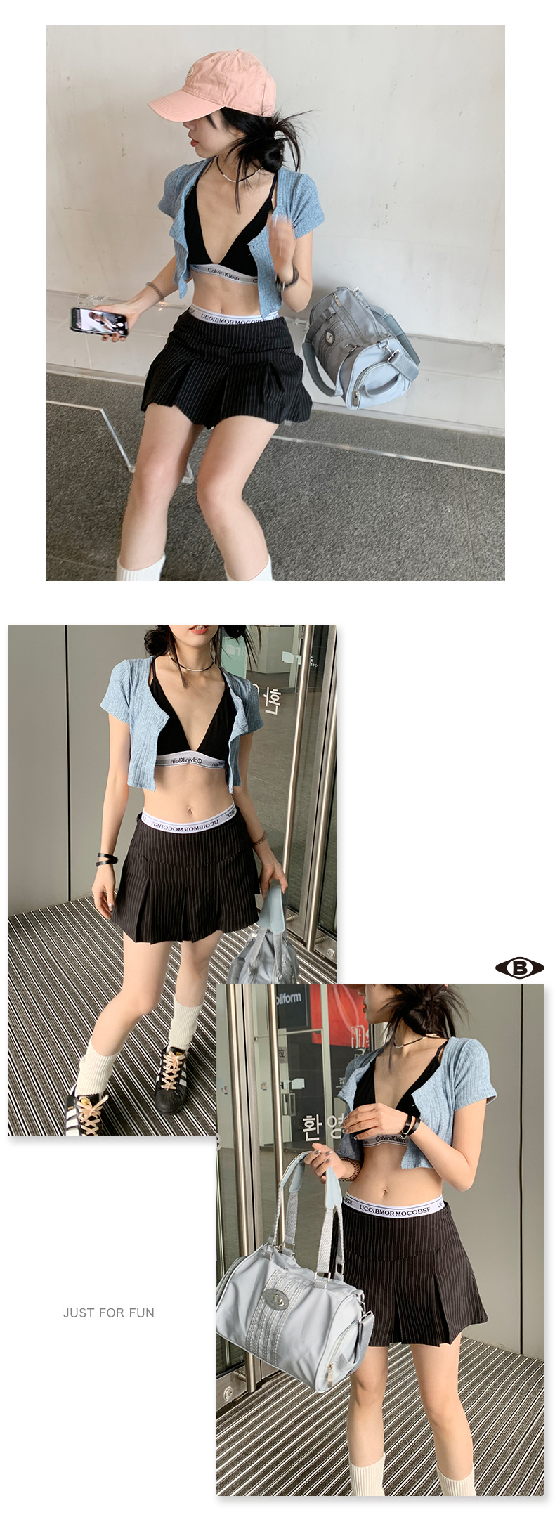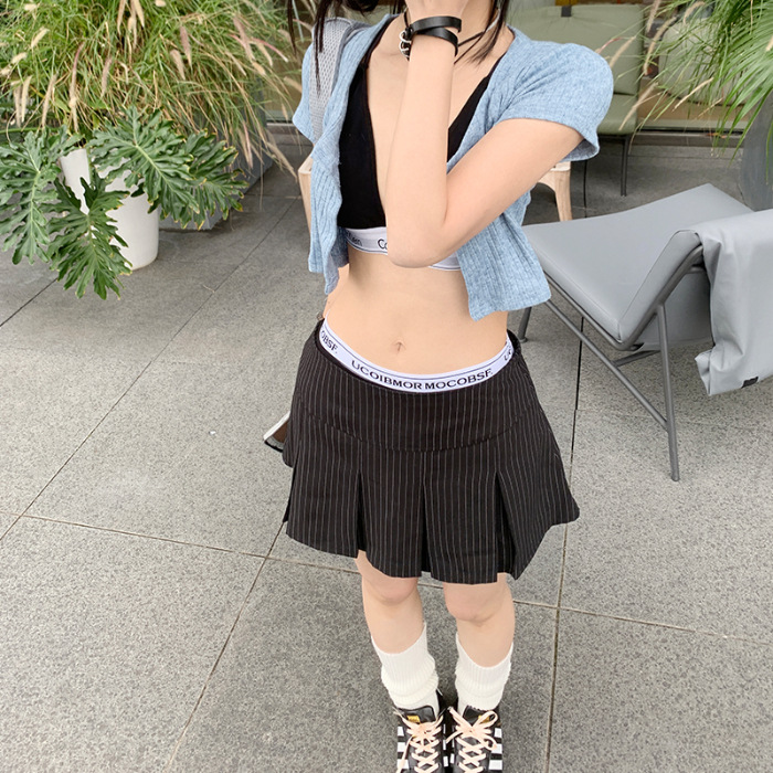 여성용 한국 세련된 블랙 스트라이프 플리츠 스커트 한국 스타일 달콤하고 매콤한 스트레치 레터 웨이스트 다용도 슬리밍 미니 스커트