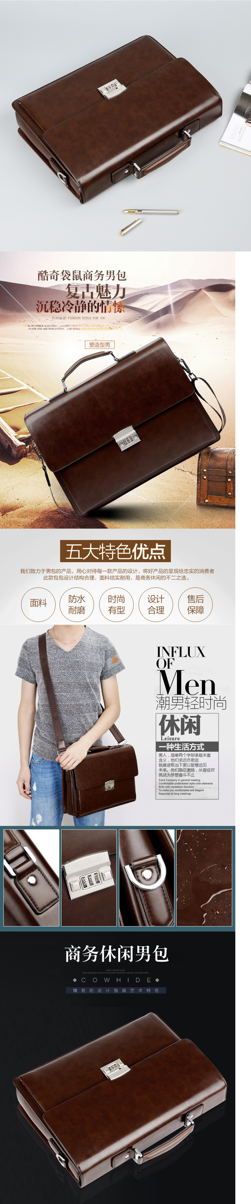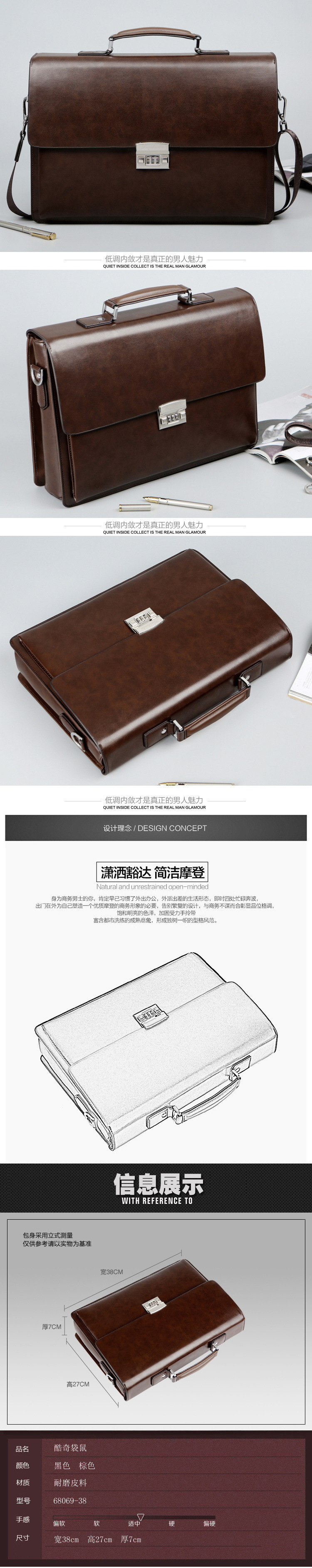 Kuqi 캥거루 남자 가방 정품 가죽 질감 남자 핸드백 가로 변호사 서류 가방 암호 잠금 크로스 바디 백 비즈니스