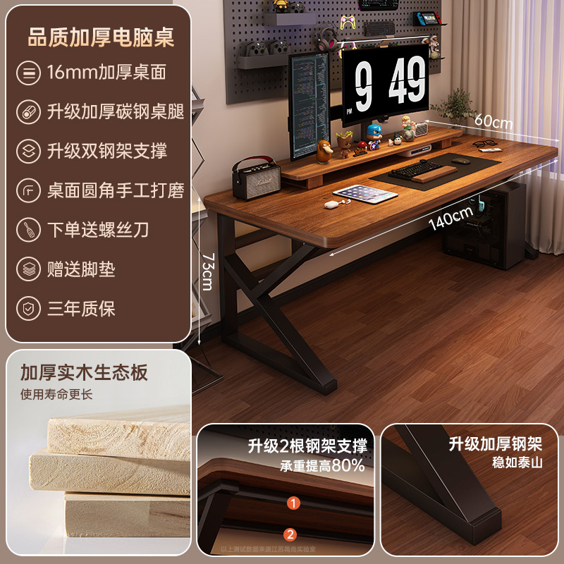 • [업그레이드된 원목 생태보드 데스크탑] 월넛 컬러 140*60*73cm