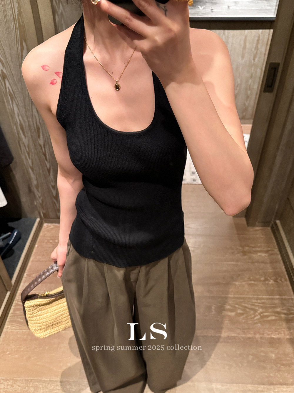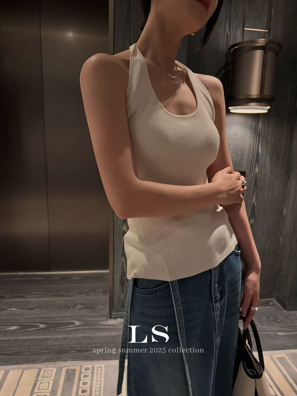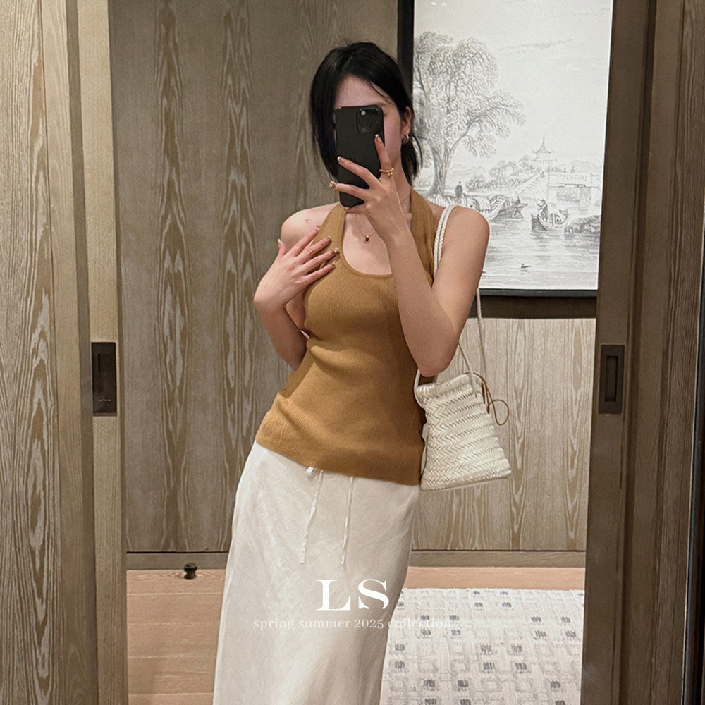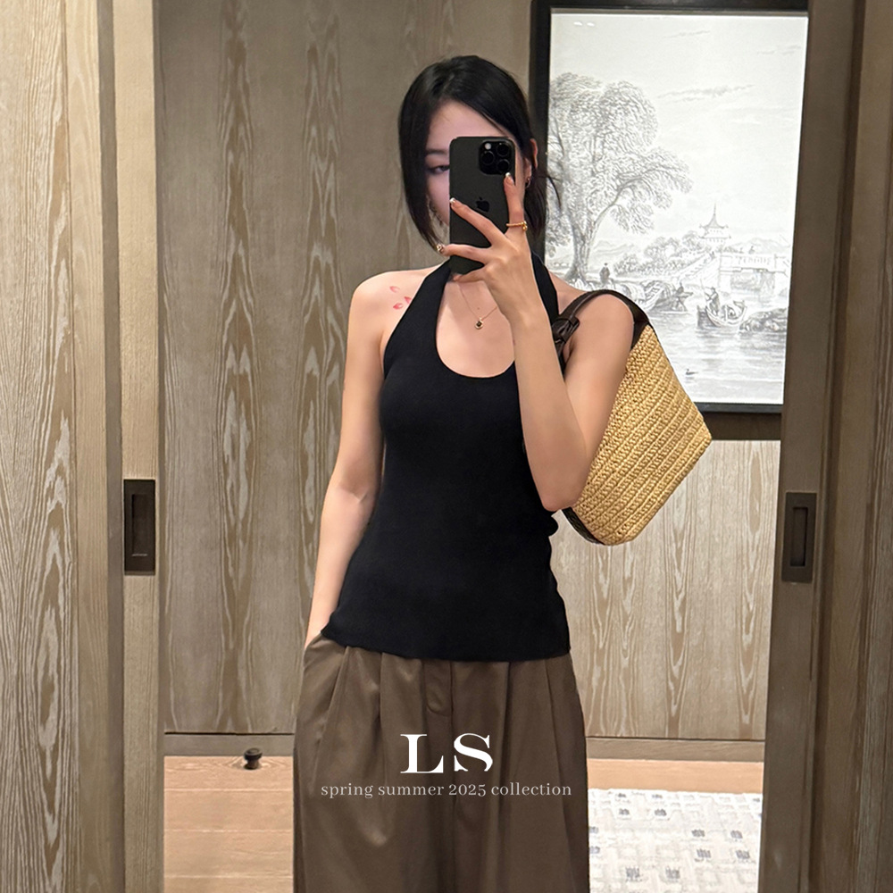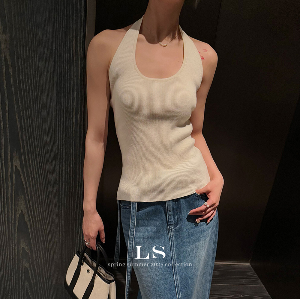 [LS 새로운 브랜드] 블랙 라벨 최소 빅 브랜드 뉴 U 넥 민소매 슬림 니트 조끼 HY019 # 봄과 여름 #스토어 가기
