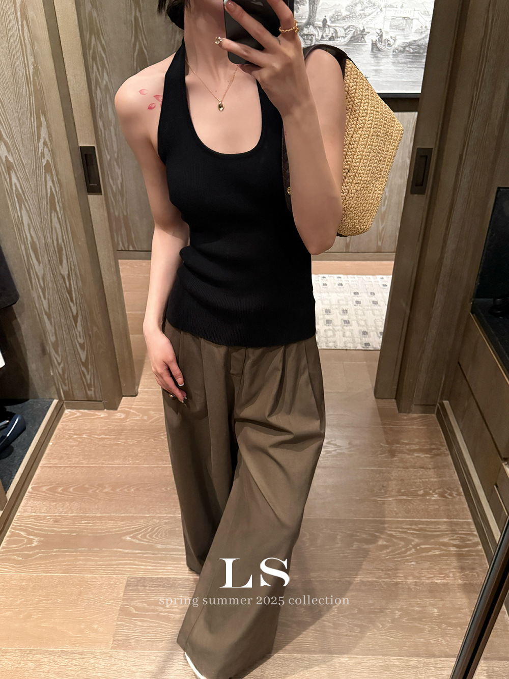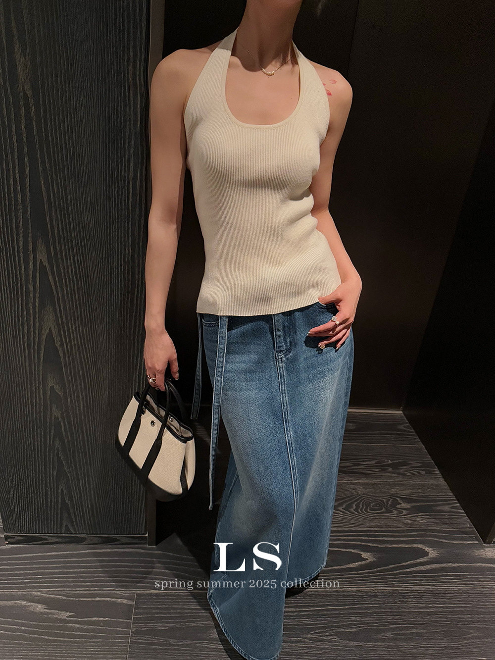 [LS 새로운 브랜드] 블랙 라벨 최소 빅 브랜드 뉴 U 넥 민소매 슬림 니트 조끼 HY019 # 봄과 여름 #