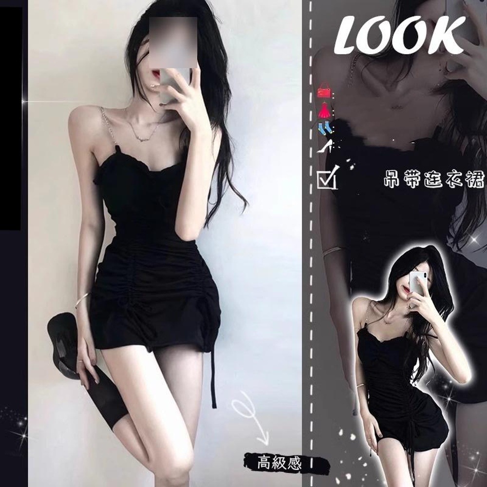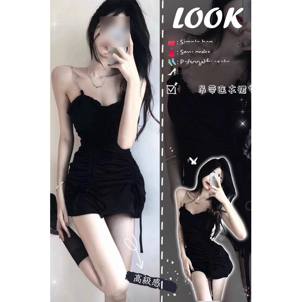 别致抹胸吊带连衣裙女紧身包臀裙抽绳褶皱高级心机辣妹风裙子赫本스토어 가기