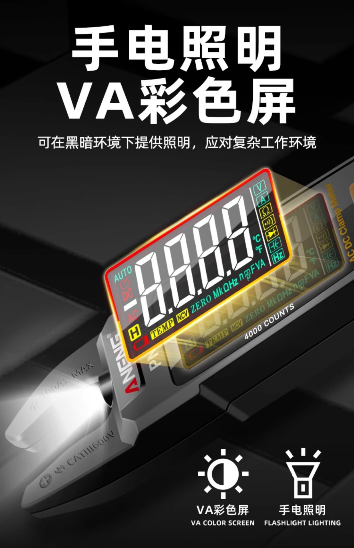 지능형 U 자형 클램프 미터 디지털 고정밀 멀티 미터 전기 기술자를위한 완전 자동 오픈 커패시터 전류 측정기