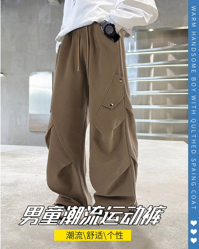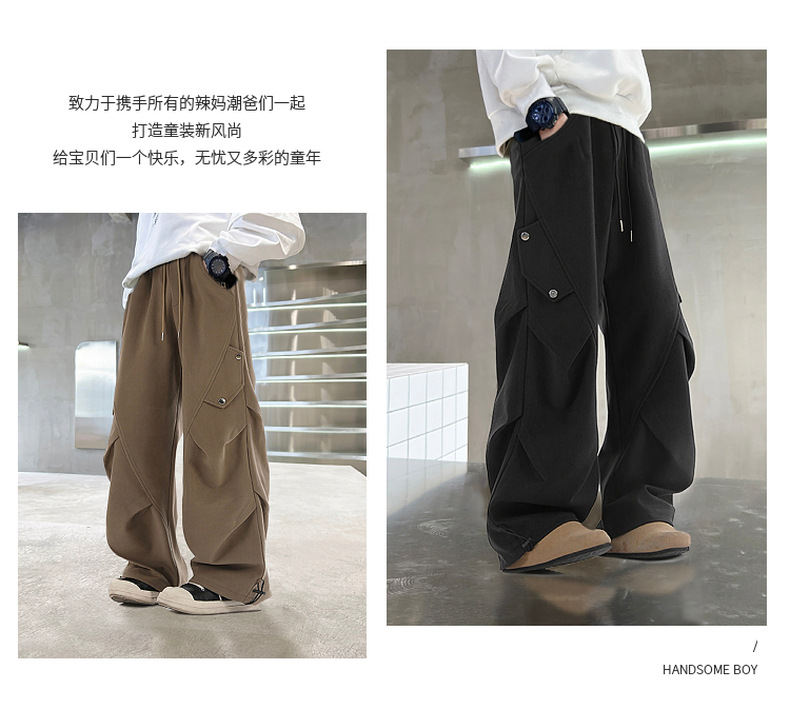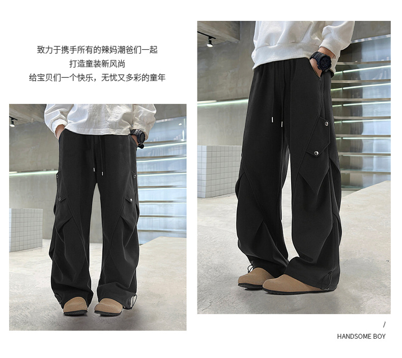 소년 바지 봄, 가을 2025 새로운 큰 어린이 봄 소년 스트레이트 어린이 봄 캐주얼 작업복 와이드 레그스토어 가기