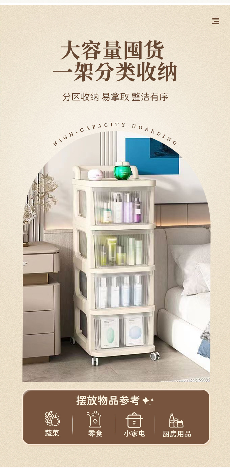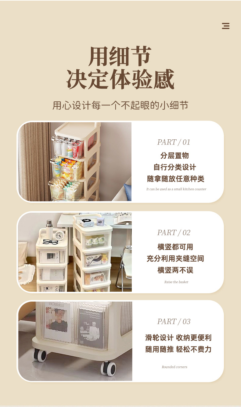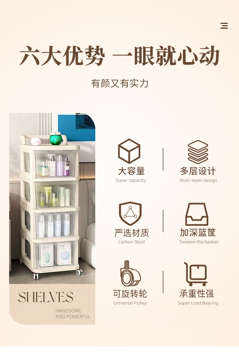 맞춤형 아크릴 트롤리 보관함 바닥 스탠딩 욕실 간격 선반 홈 거실 스낵 보관함스토어 가기