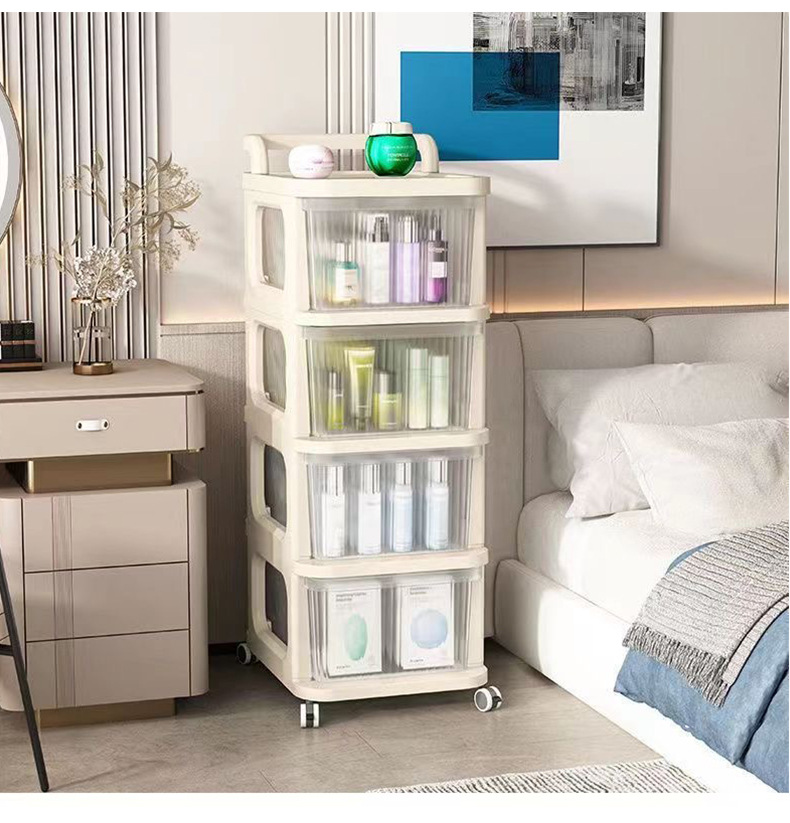 맞춤형 아크릴 트롤리 보관함 바닥 스탠딩 욕실 간격 선반 홈 거실 스낵 보관함