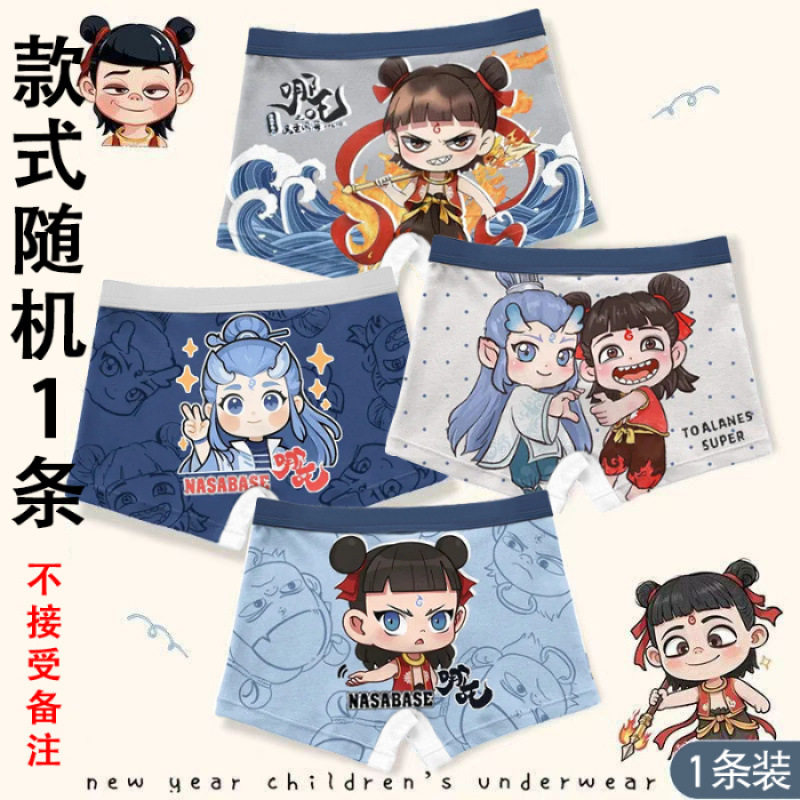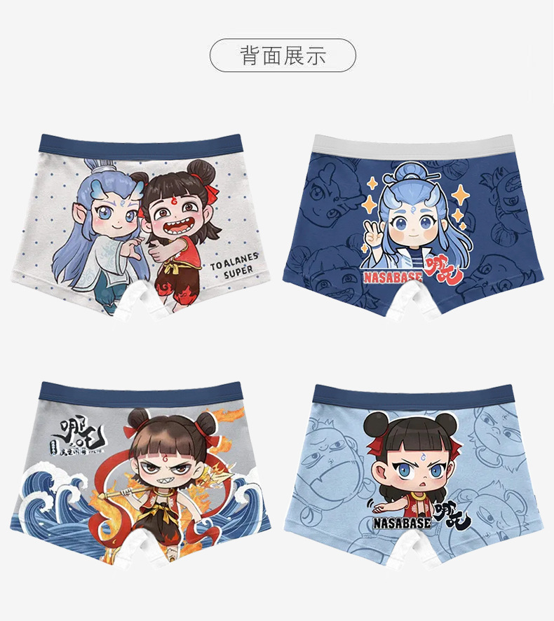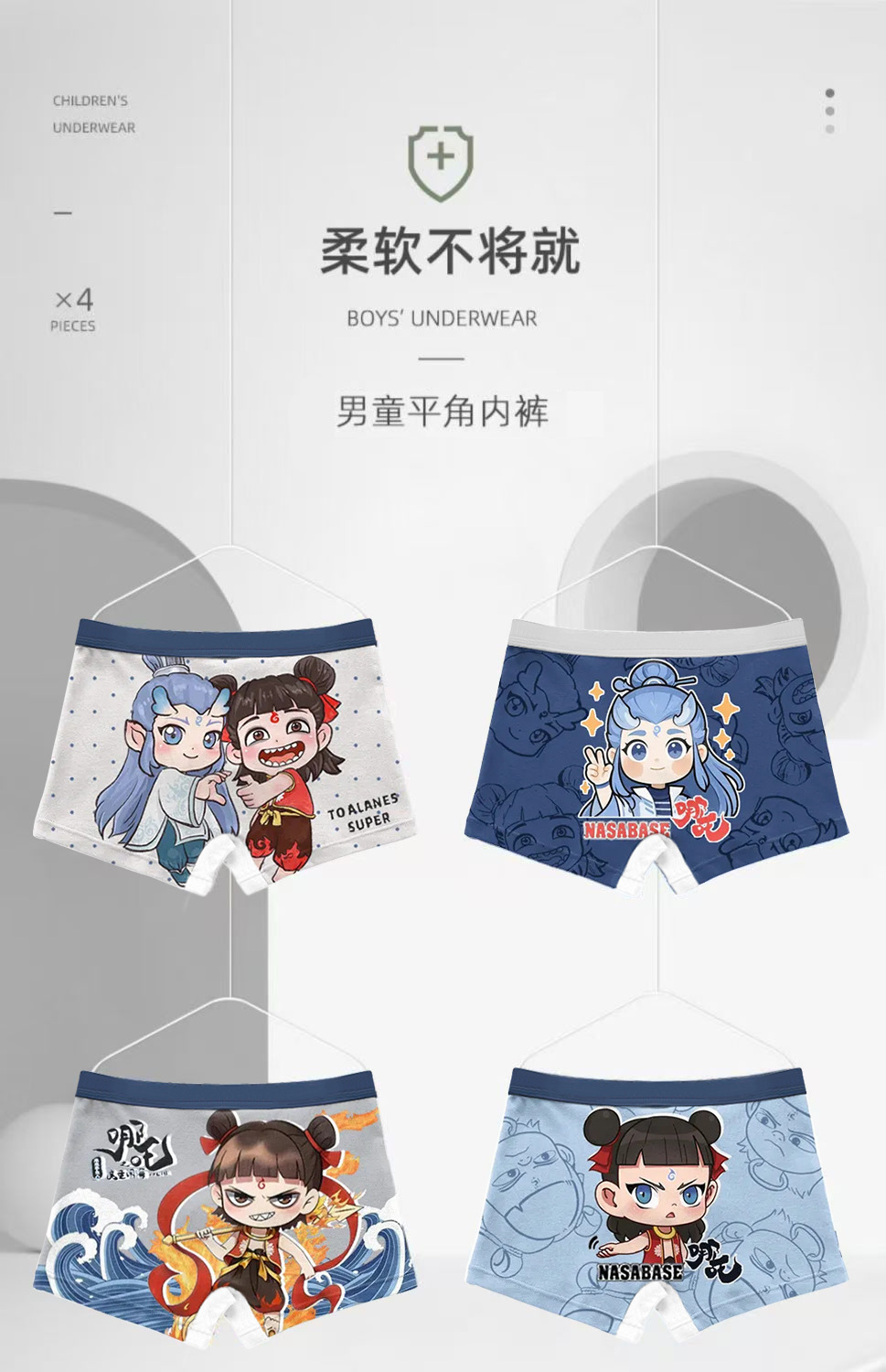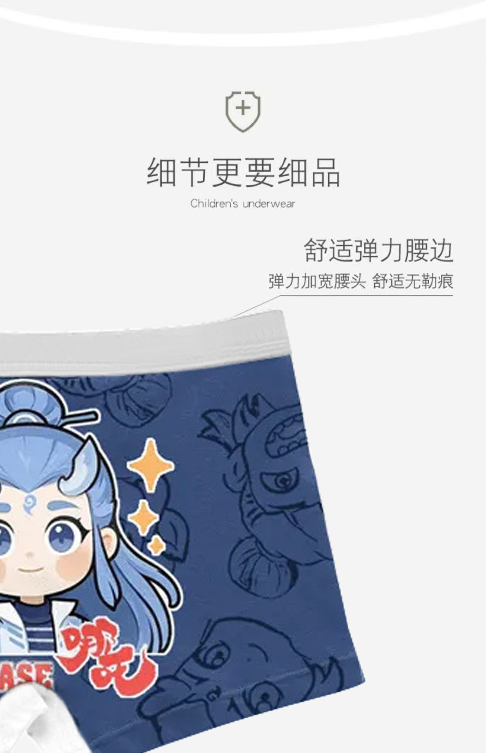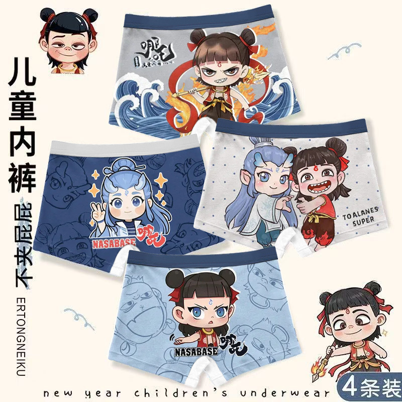 (4 팩) 어린이 속옷 소년 Nezha 2025 새로운 스타일 복서 스타일 여름 얇은 반바지 큰 어린이 소년스토어 가기