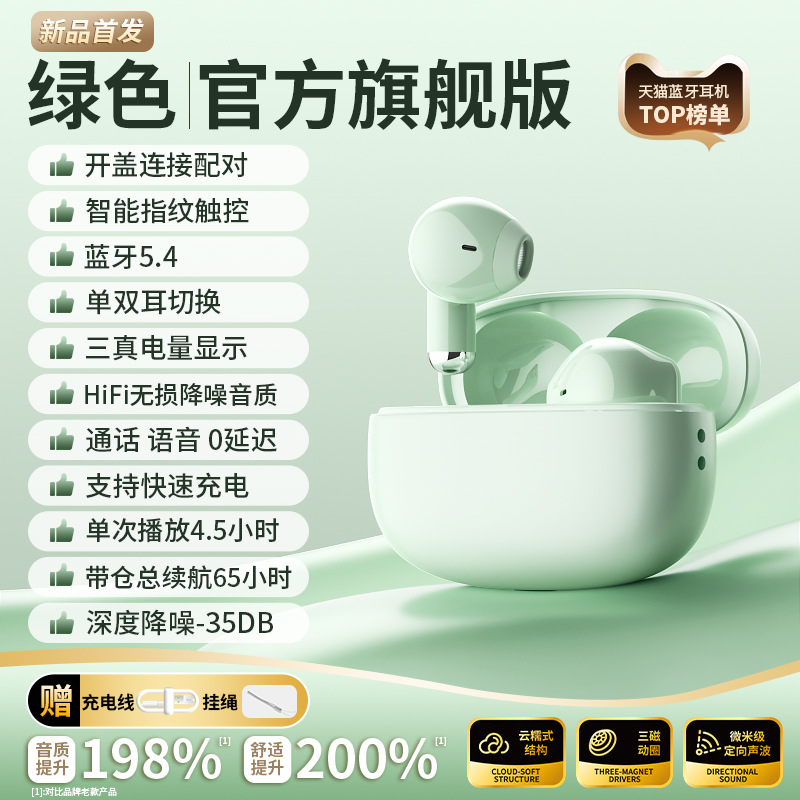 • 상위 버전 [배터리 수명 200% 증가★돌비 공간 오디오★-45DB 깊은 소음 감소】녹색