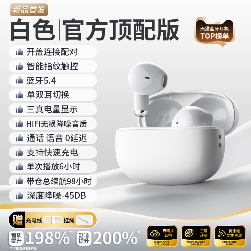 • 상위 버전 [배터리 수명 200% 증가★돌비 공간 오디오★-45DB 딥 노이즈 감소】화이트