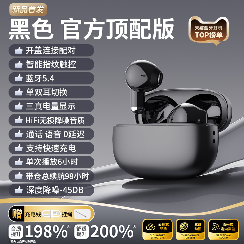 • 상위 버전 [배터리 수명 200% 증가★돌비 공간 오디오★-45DB 딥노이즈리덕션] 블랙