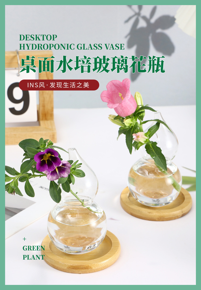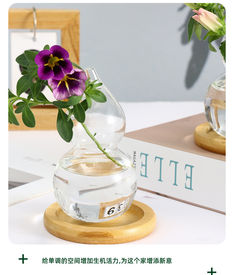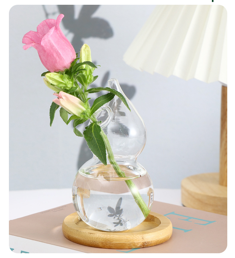조롱박 모양의 창의적인 작은 꽃병, 유리 고급 B&B 중고 꽃병, 인스 스타일의 고급스러운 식탁 장식스토어 가기