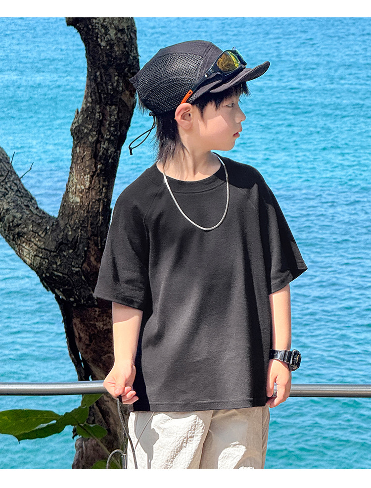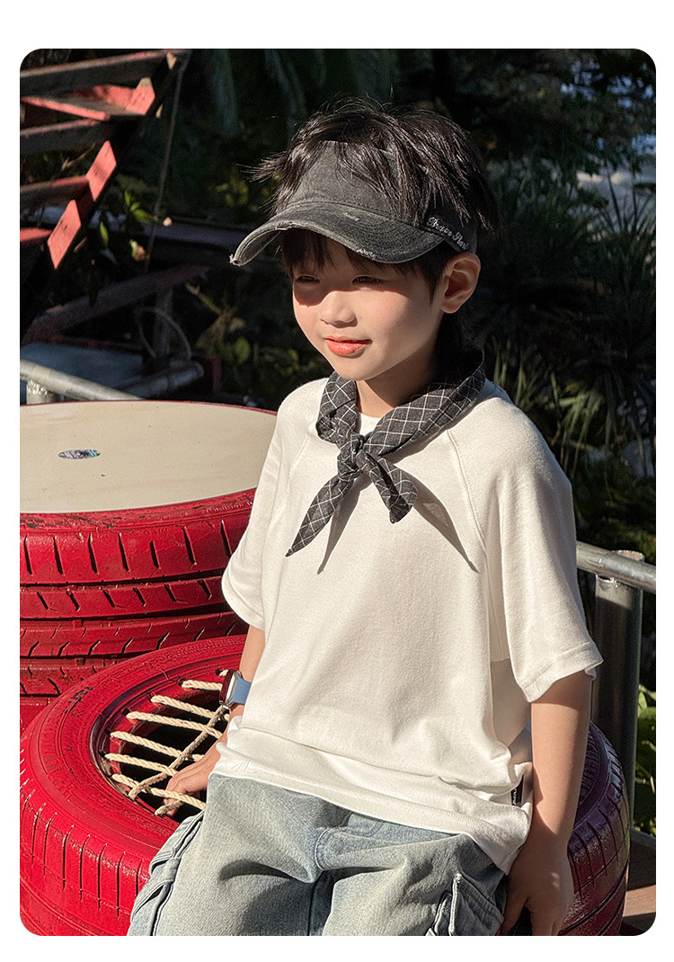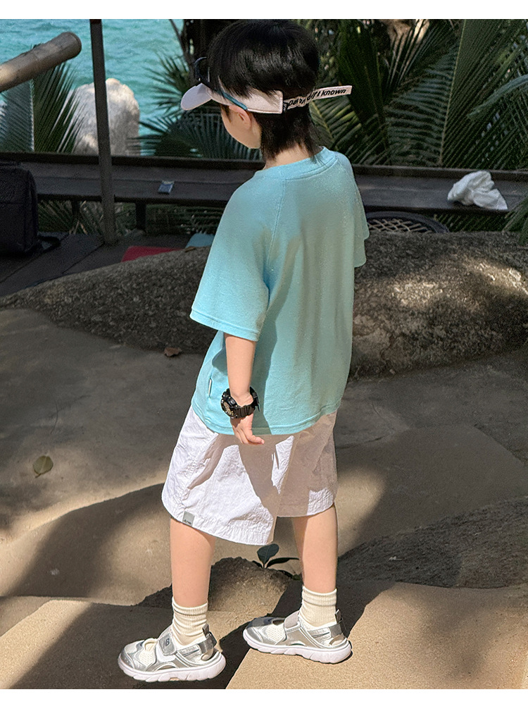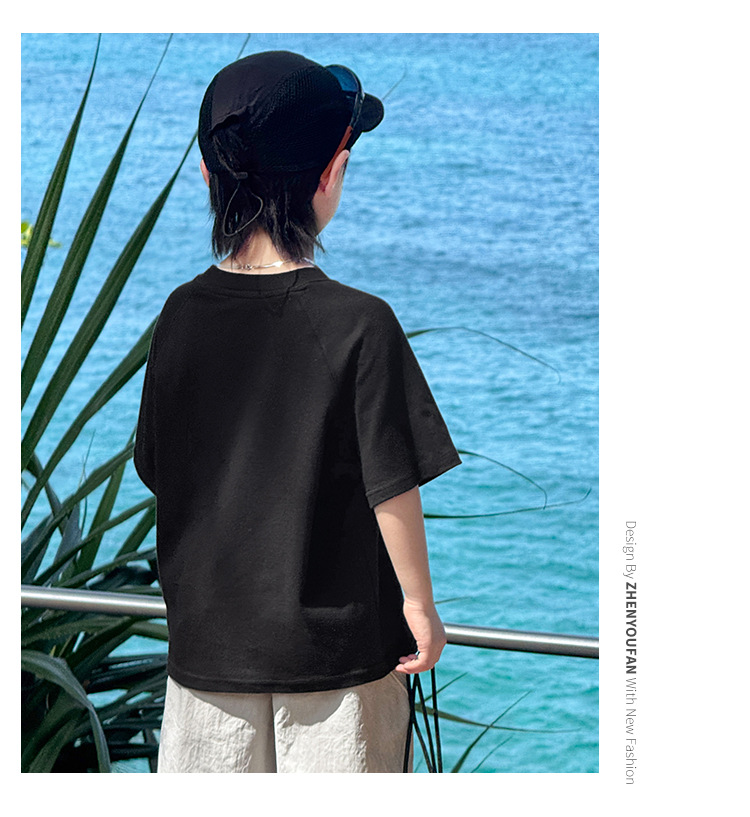 Zhenpinxuan 아동 의류 소년 반팔 티셔츠 여름 2025 새로운 바닥 셔츠 아동 반팔 의류 여름상의