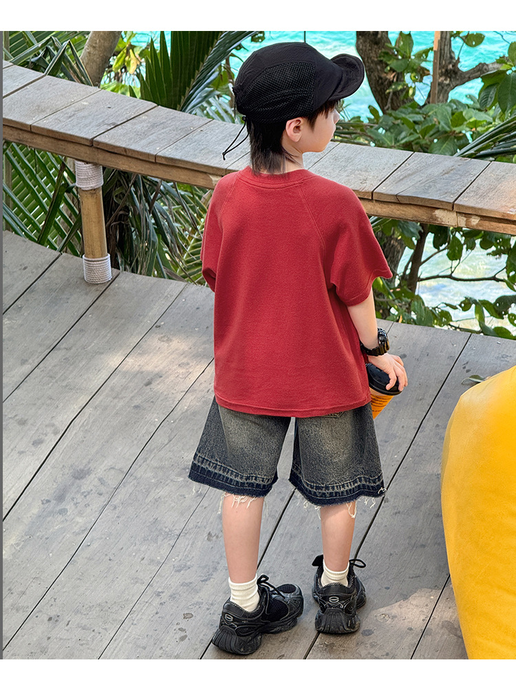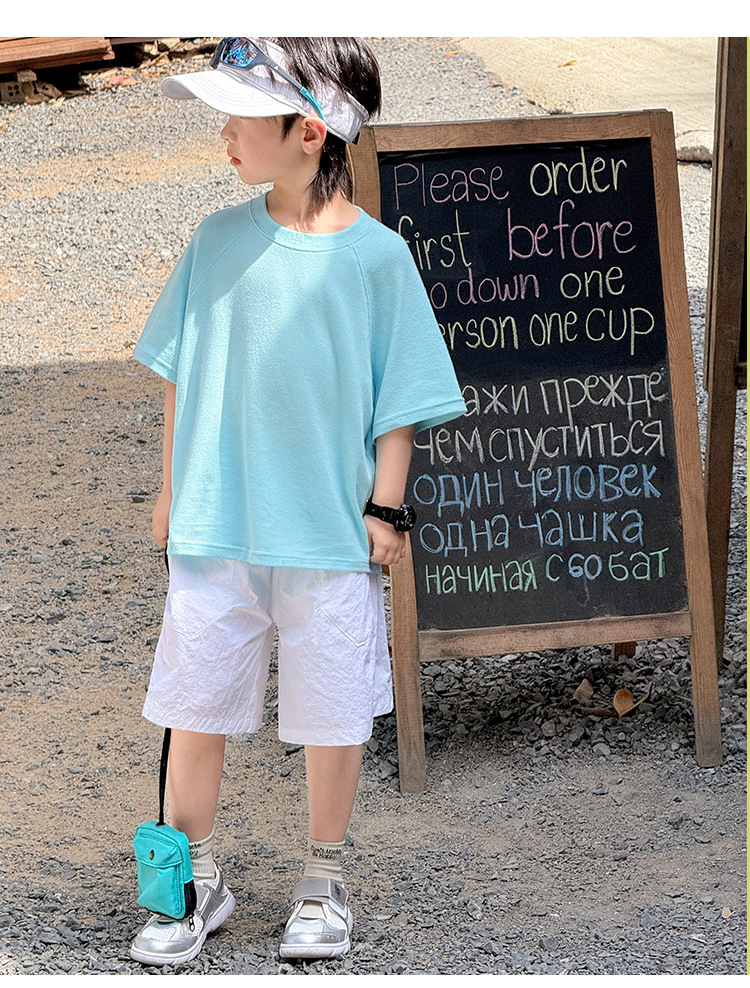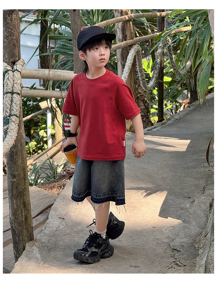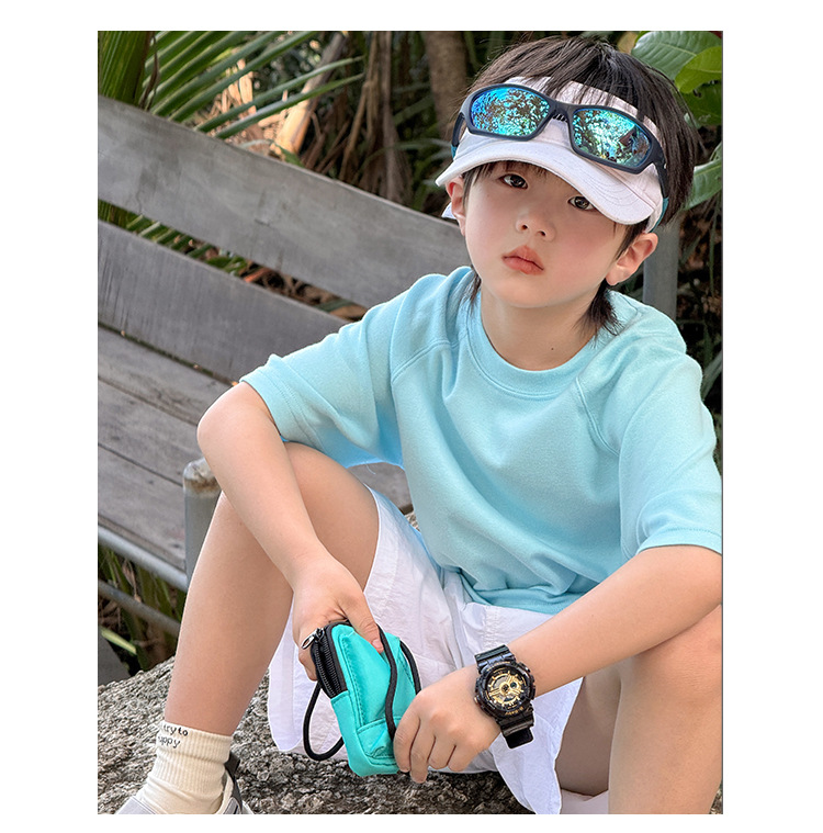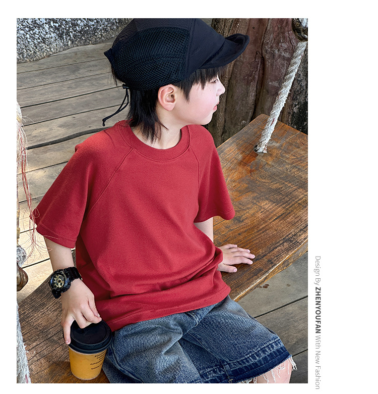 Zhenpinxuan 아동 의류 소년 반팔 티셔츠 여름 2025 새로운 바닥 셔츠 아동 반팔 의류 여름상의