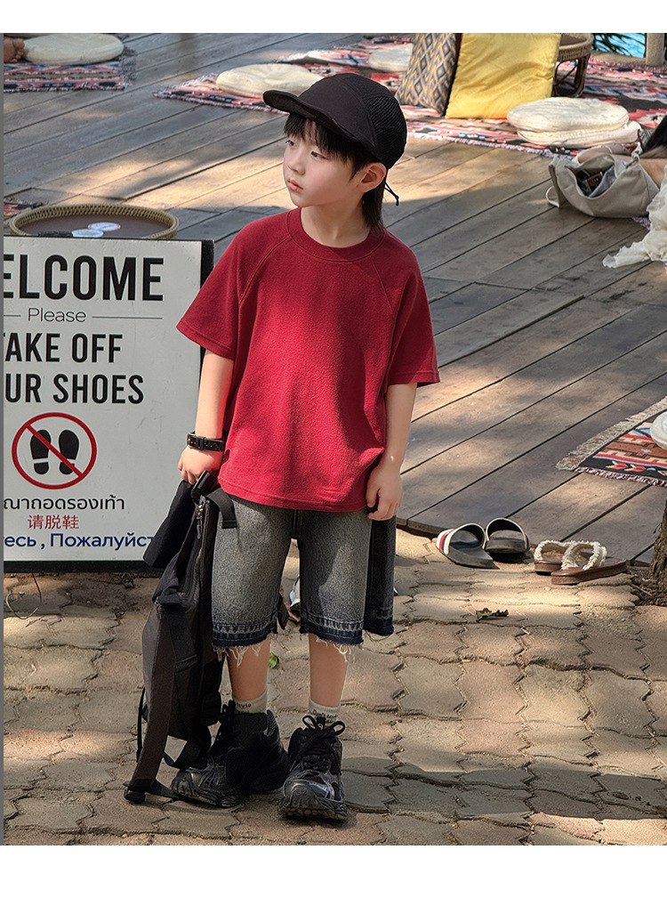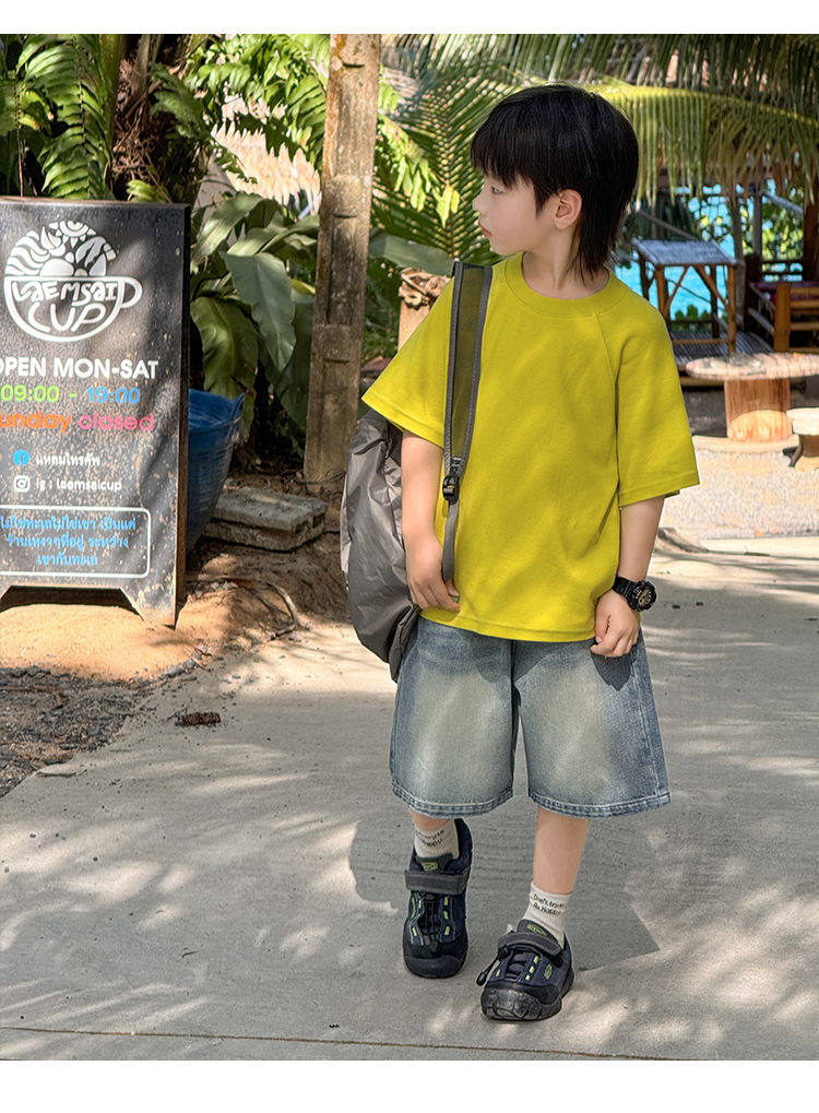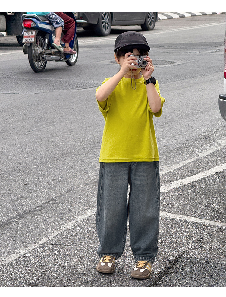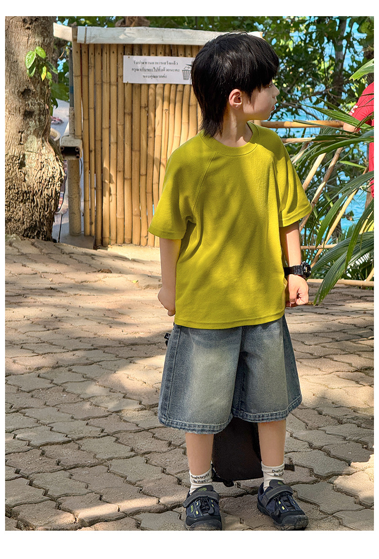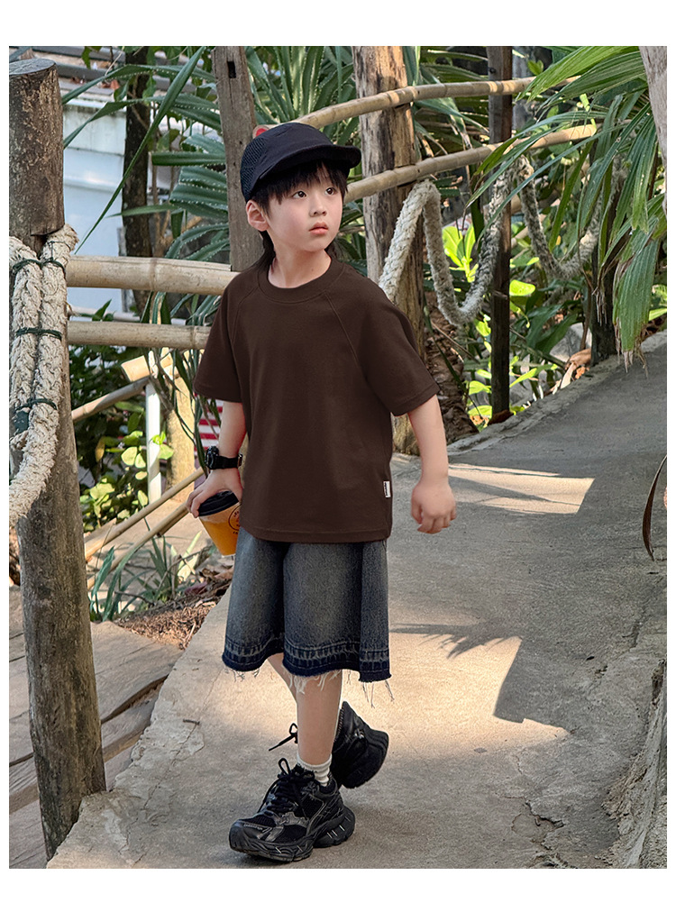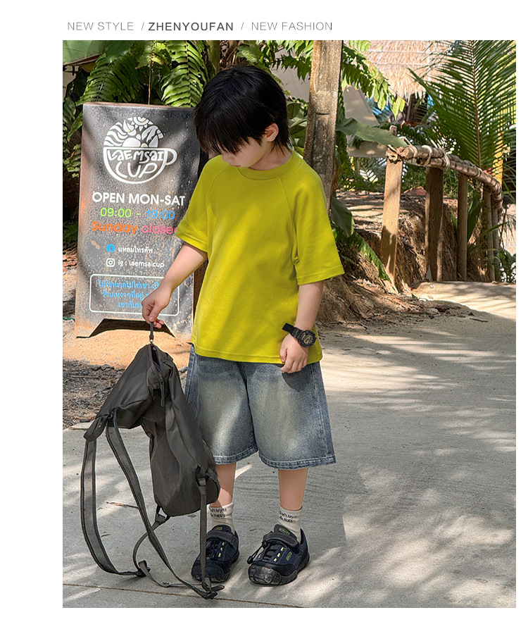 Zhenpinxuan 아동 의류 소년 반팔 티셔츠 여름 2025 새로운 바닥 셔츠 아동 반팔 의류 여름상의스토어 가기