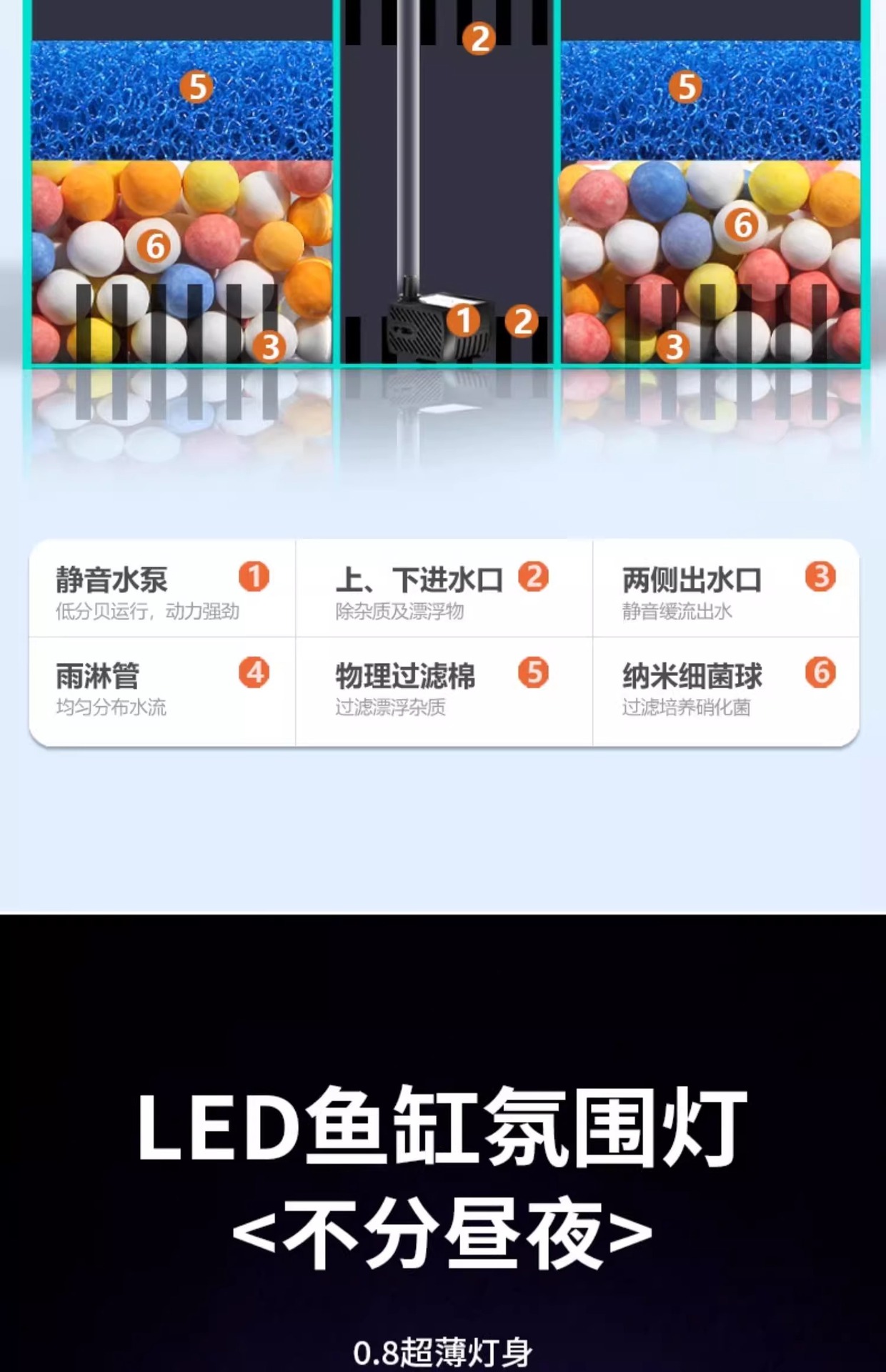 • 5개의 높은 수납공간과 2개의 스포트라이트를 갖춘 베타 수조 [백 필터 포함]