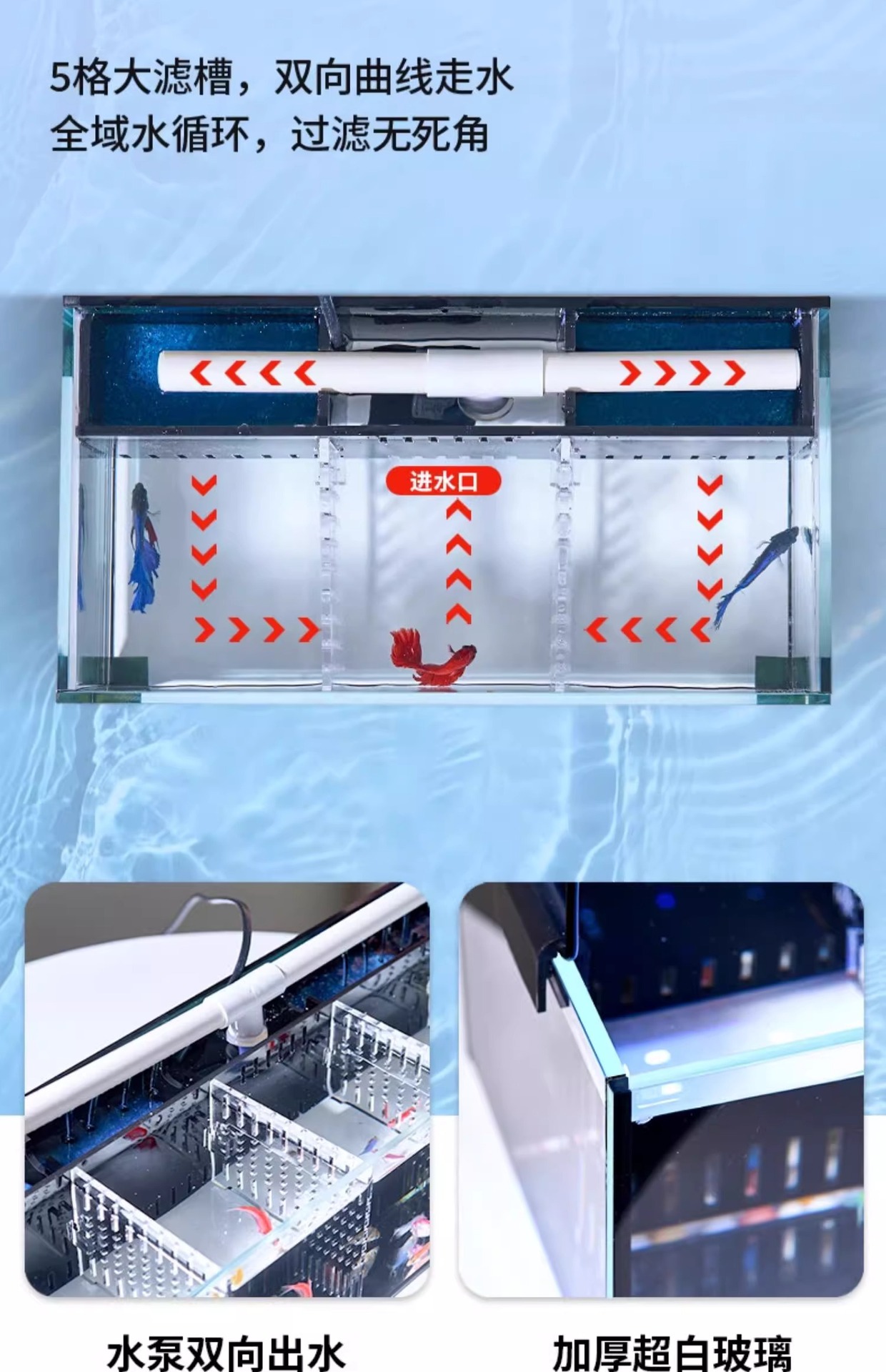 거실용 소형 초백색 카피아수조, 유리 다중격자 격리 후면 필터, 물교환 불필요, 카피아수조용 생태금붕어수조스토어 가기