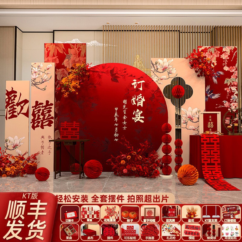 웨딩 연회 장식 2024 새로운 중국 스타일의 온라인 레드 보드 웨딩 장면 높은 수준의 장식품 세트