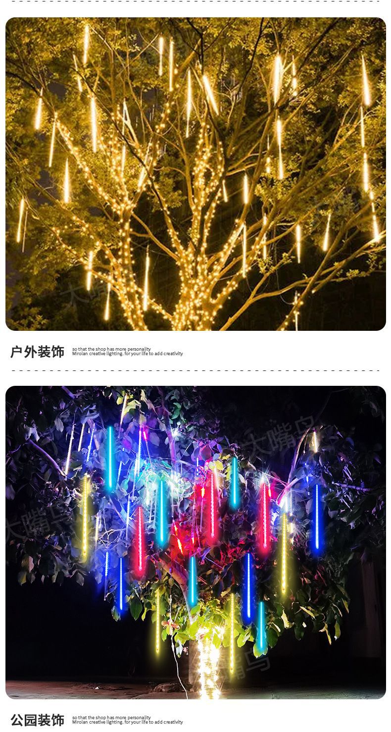 Led 유성 샤워 빛 야외 방수 문자열 빛 태양 크리스마스 휴일 거리 장식 안뜰 다채로운 분위기 빛스토어 가기