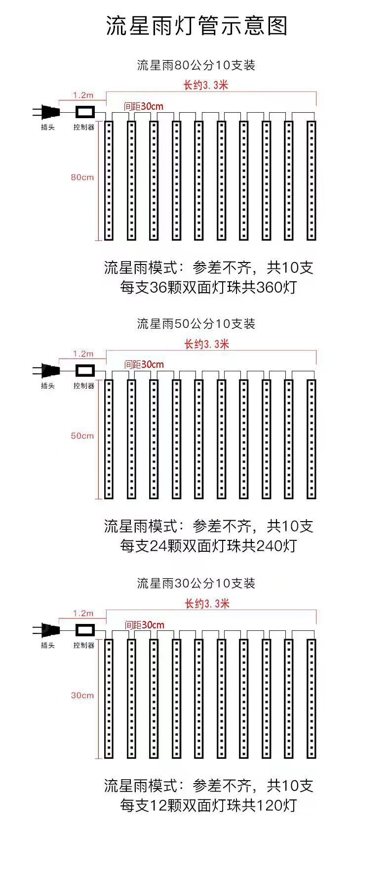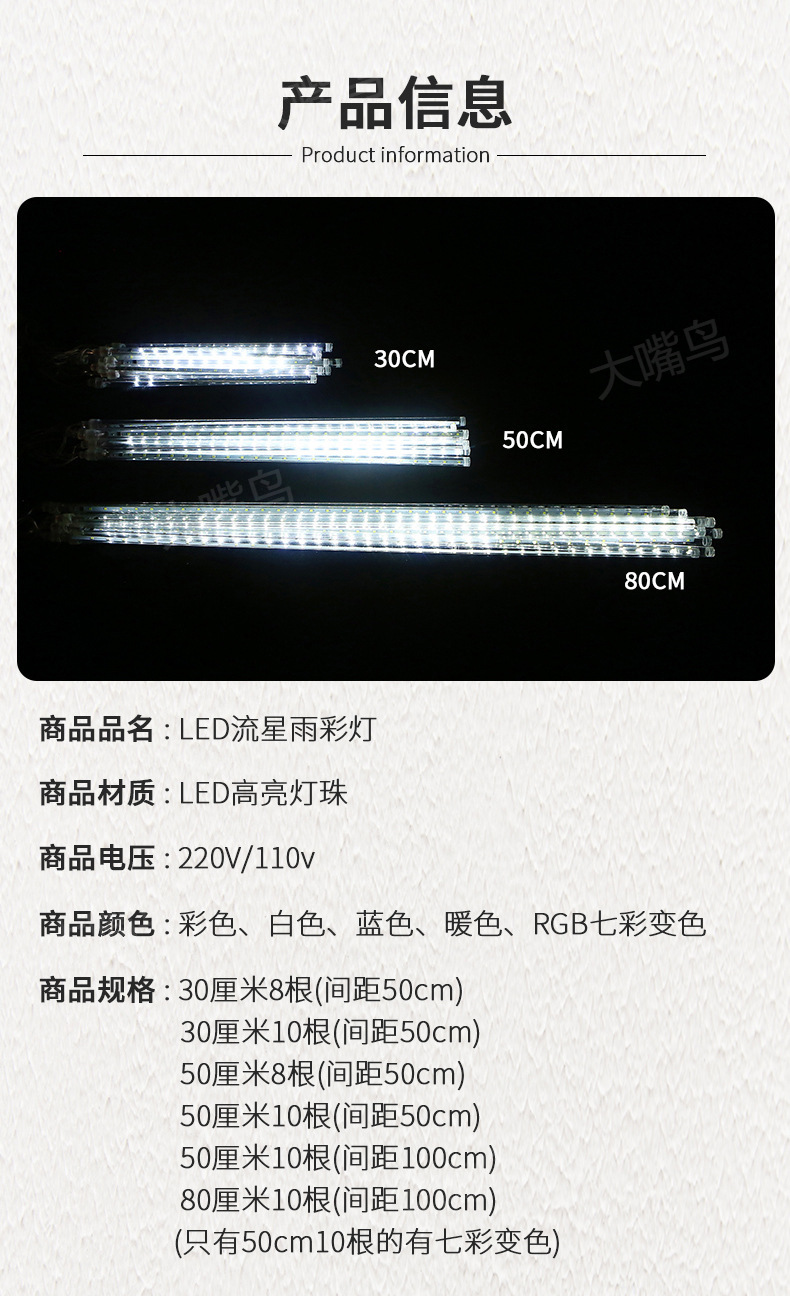 • 50CM 10개(전원 공급 장치 포함)(따뜻한 조명)