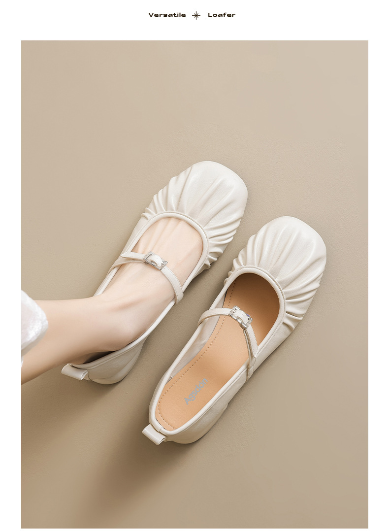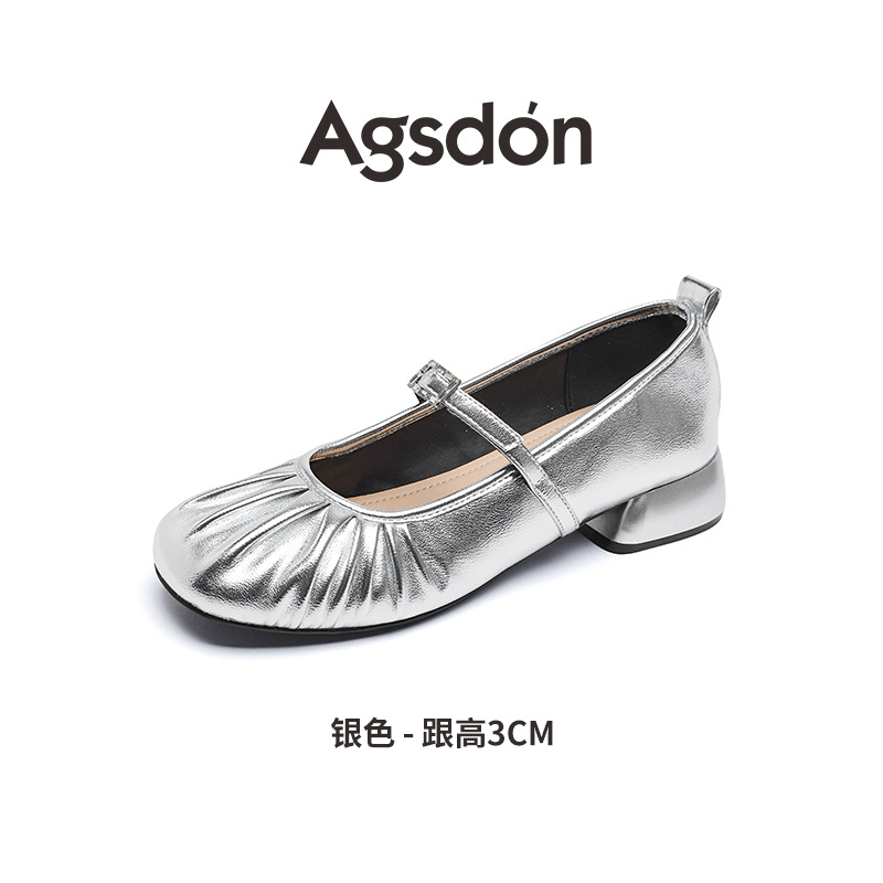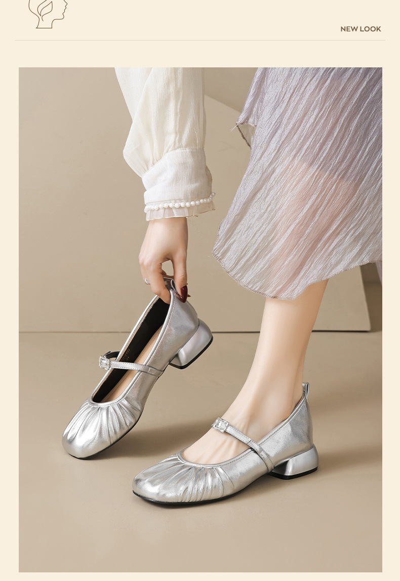 아우 구시덴 실버 메리 제인 신발 여성 2025 년 새 여름 얕은 입 싱글 신발 우아한 통근 소프트 하단 가죽 신발스토어 가기