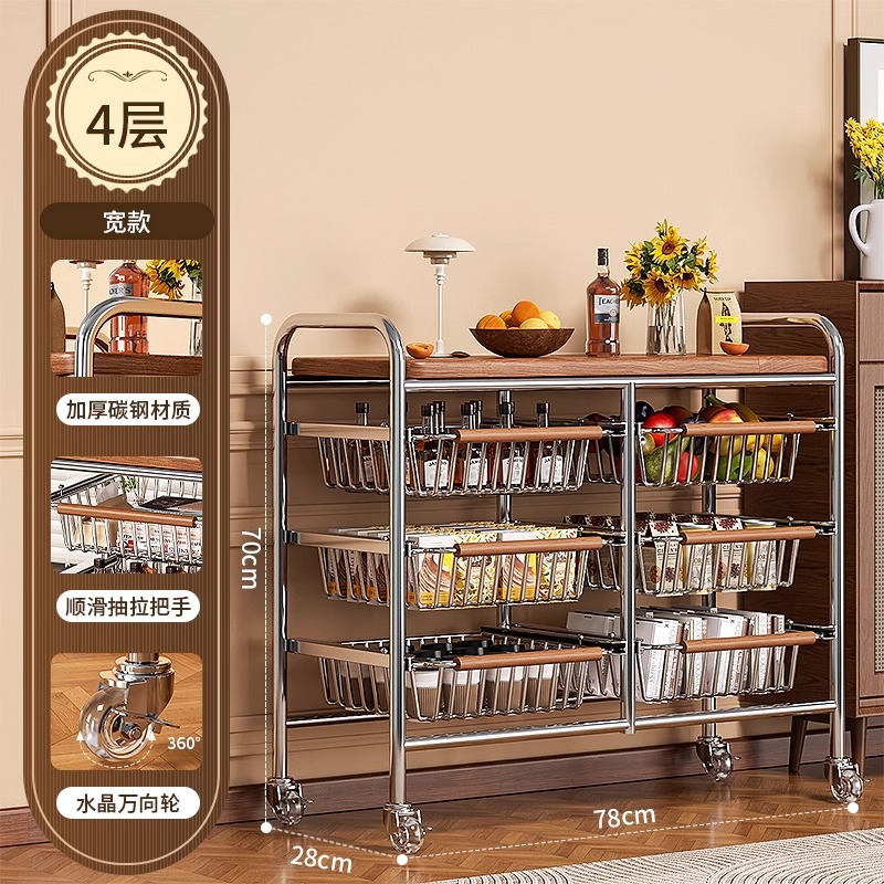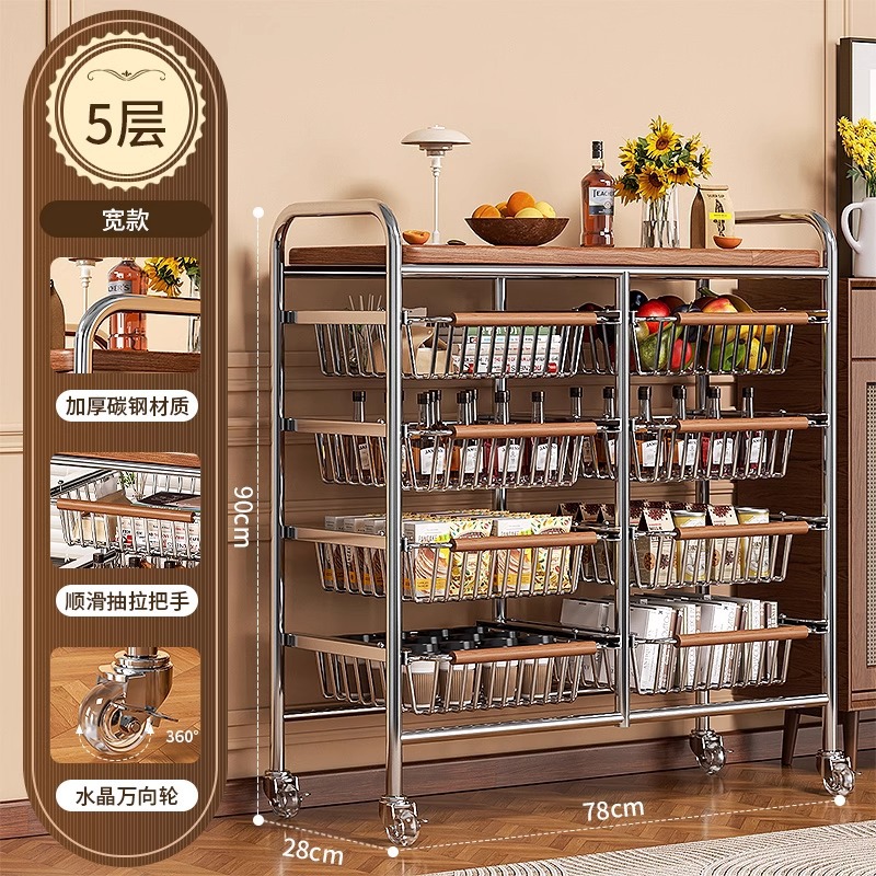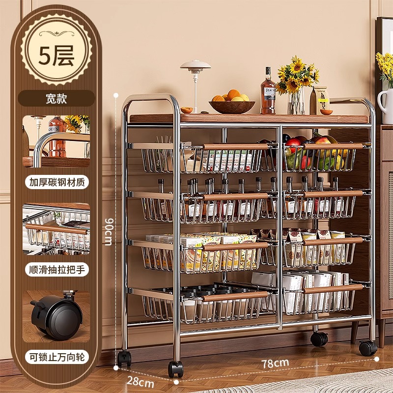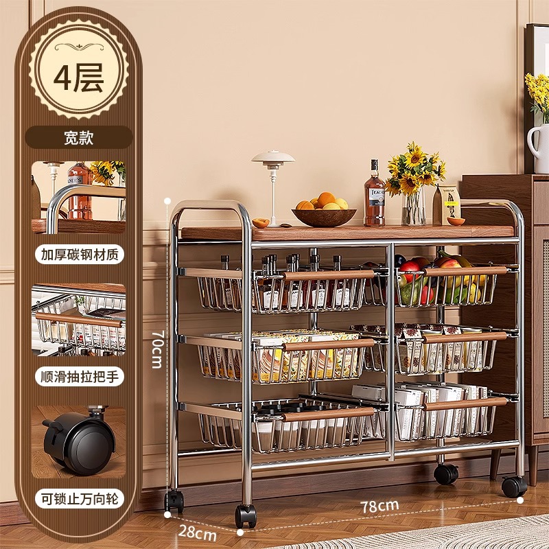 중세 스타일 틈새 트롤리 보관함 다층 거실 스낵 과일 및 야채 주방 야채 바구니 이동식 보관 캐비닛스토어 가기