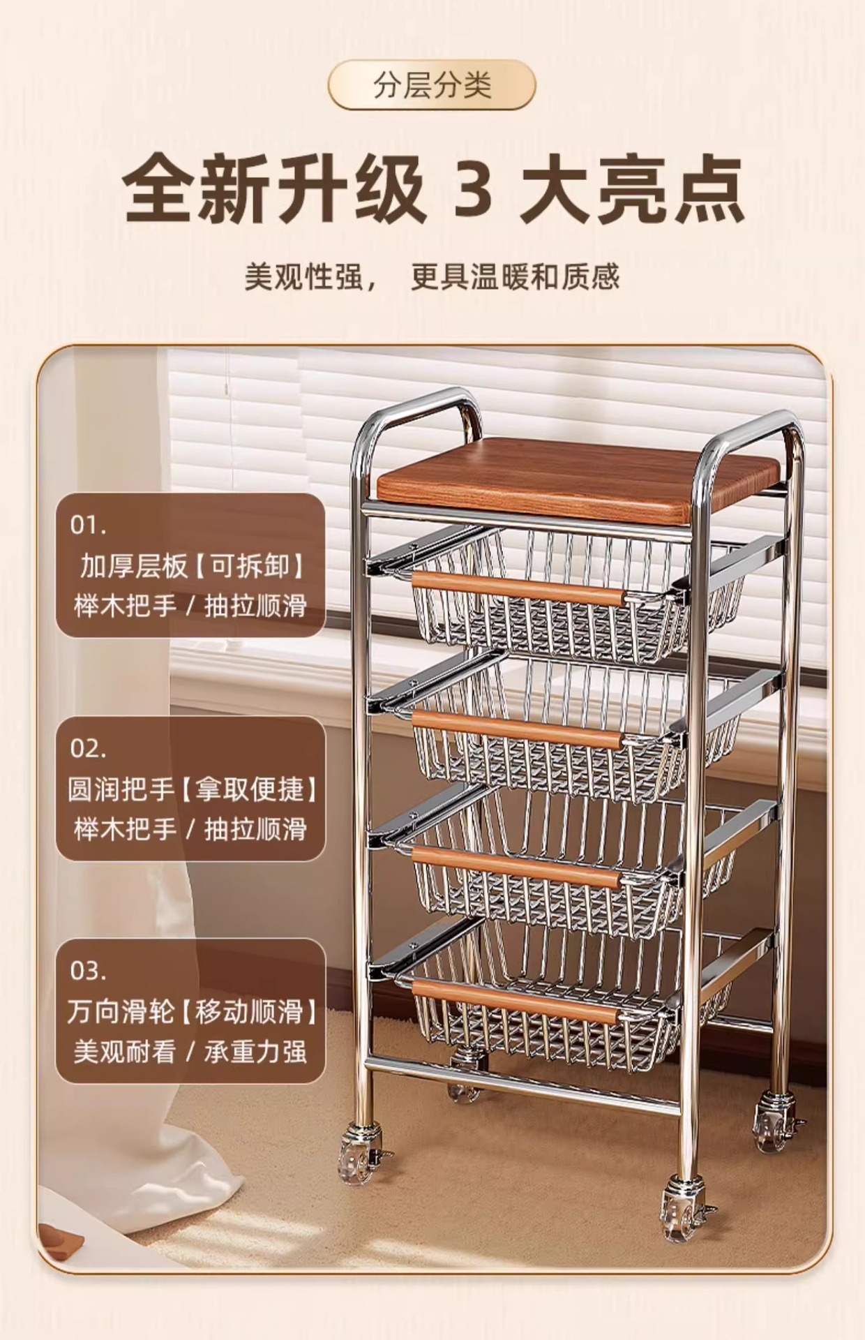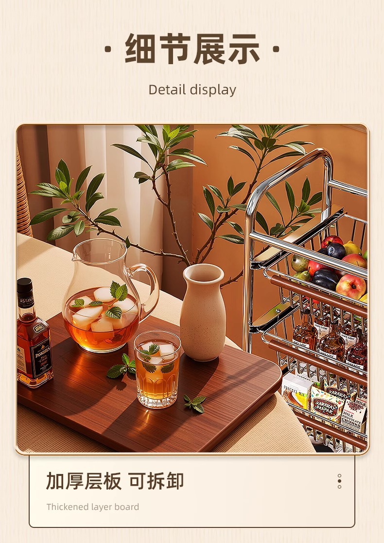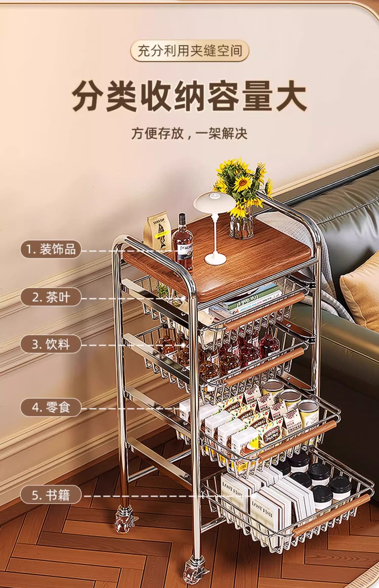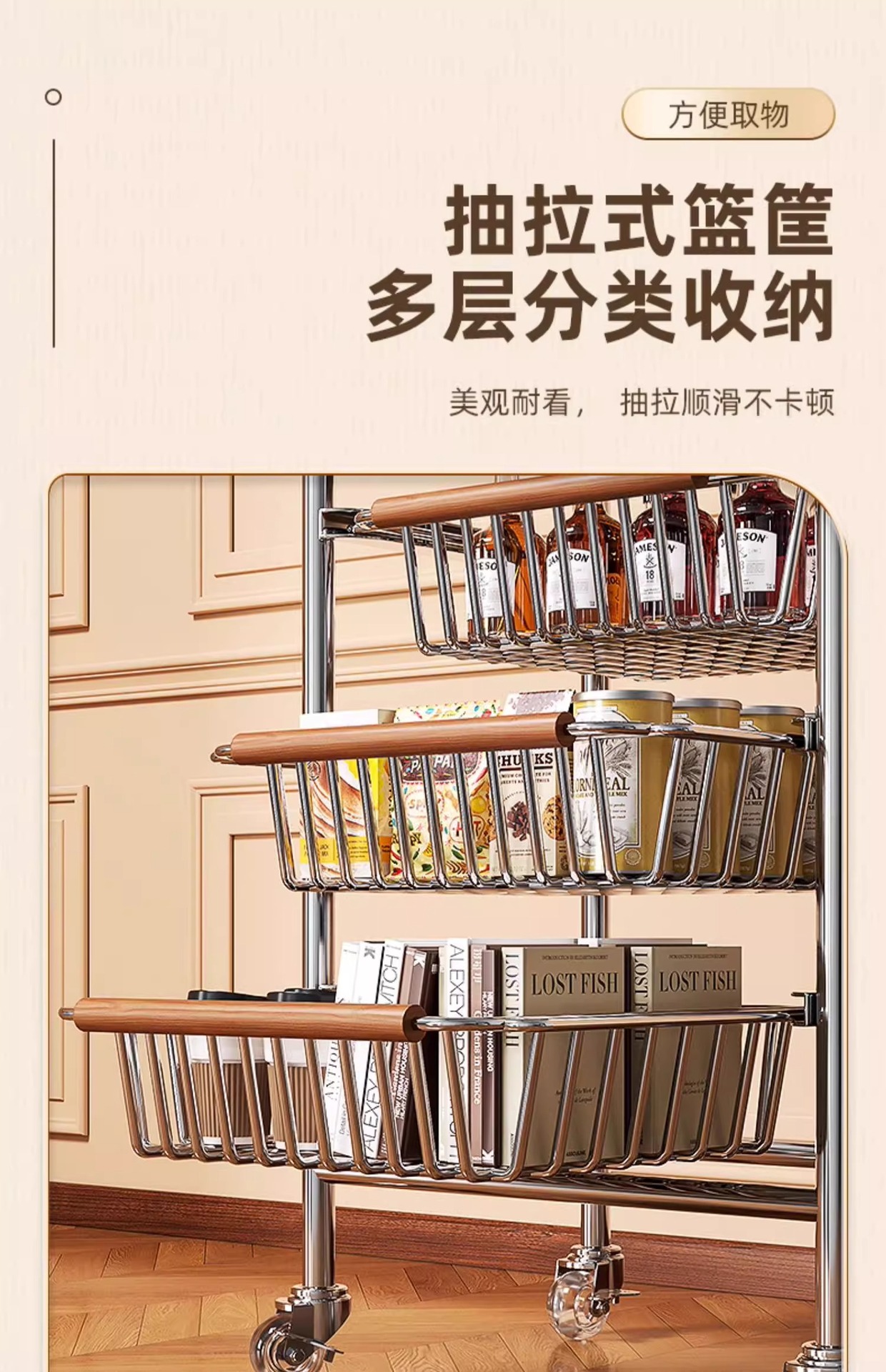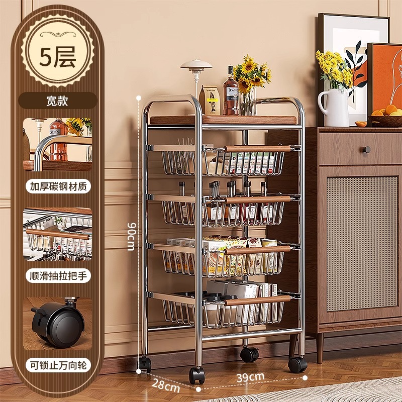 중세 스타일 틈새 트롤리 보관함 다층 거실 스낵 과일 및 야채 주방 야채 바구니 이동식 보관 캐비닛