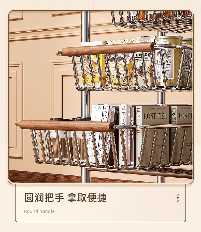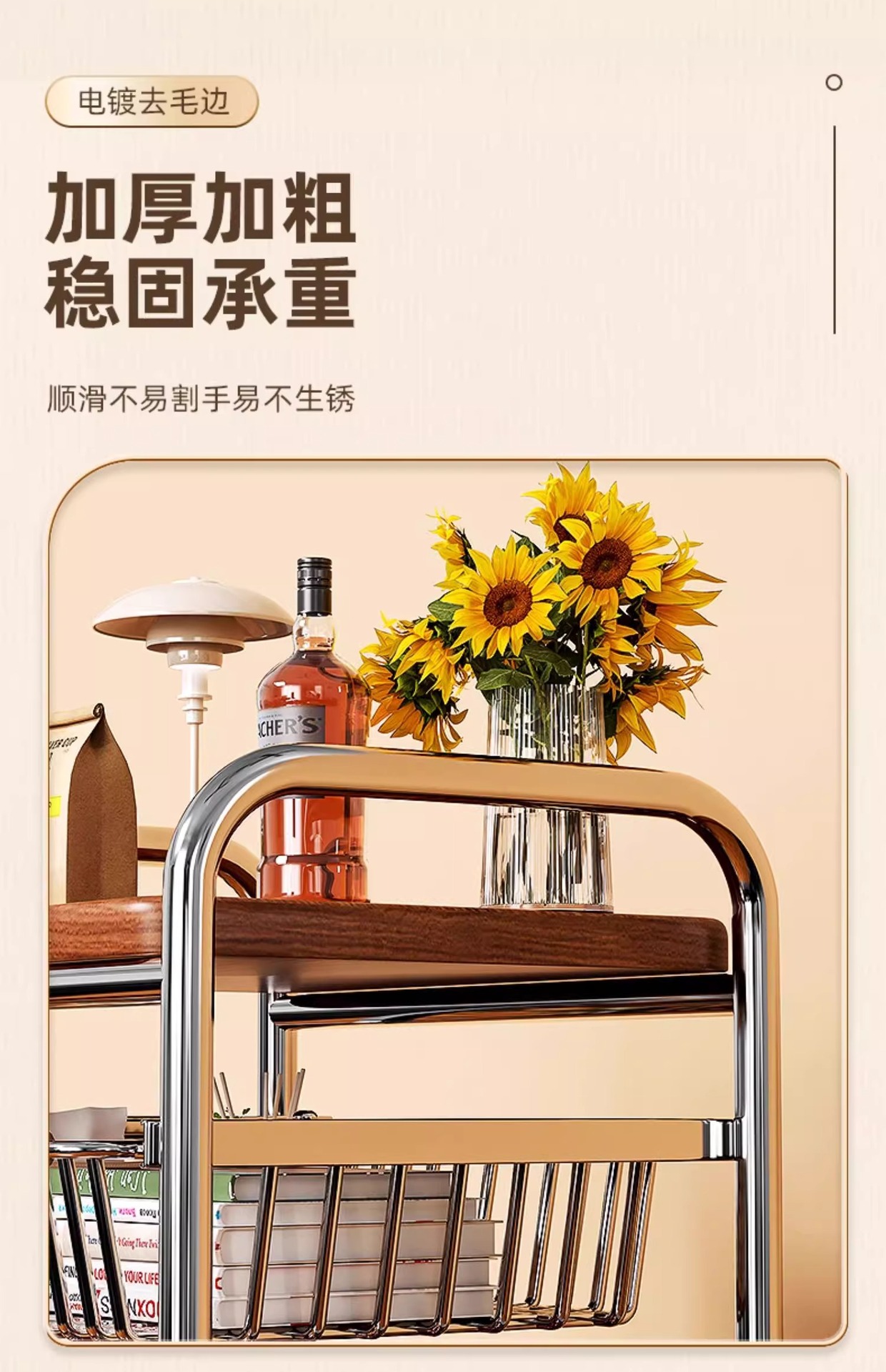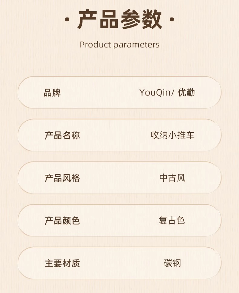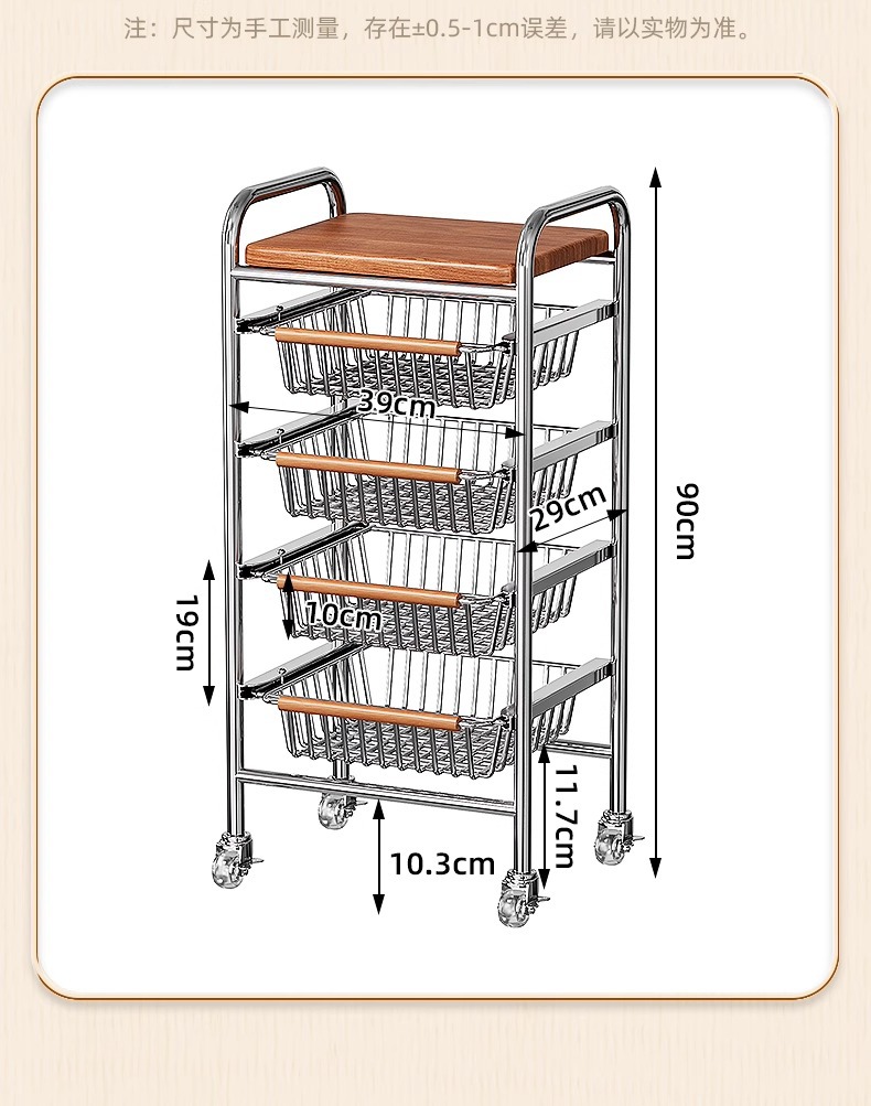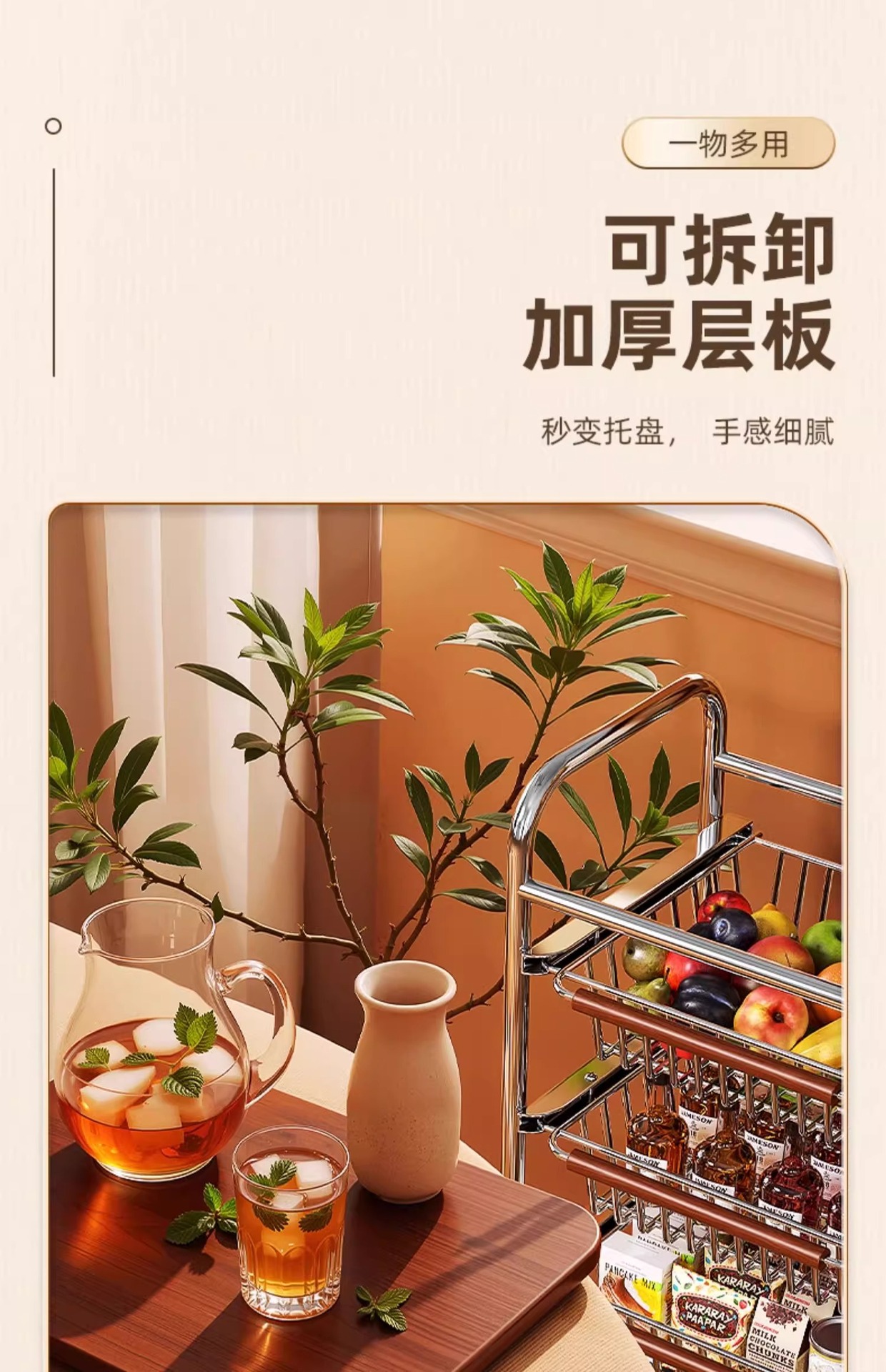 중세 스타일 틈새 트롤리 보관함 다층 거실 스낵 과일 및 야채 주방 야채 바구니 이동식 보관 캐비닛