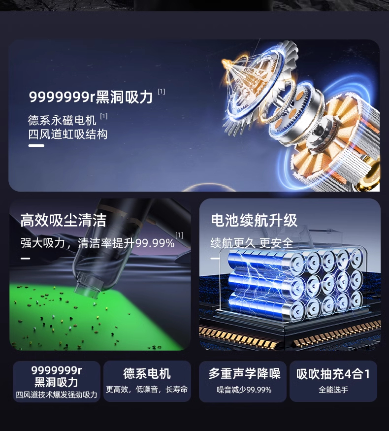 독일 휴대용 진공 청소기 가정용 무선 대형 흡입 소형 자동차 충전식 침대 자동차 초강력 미니