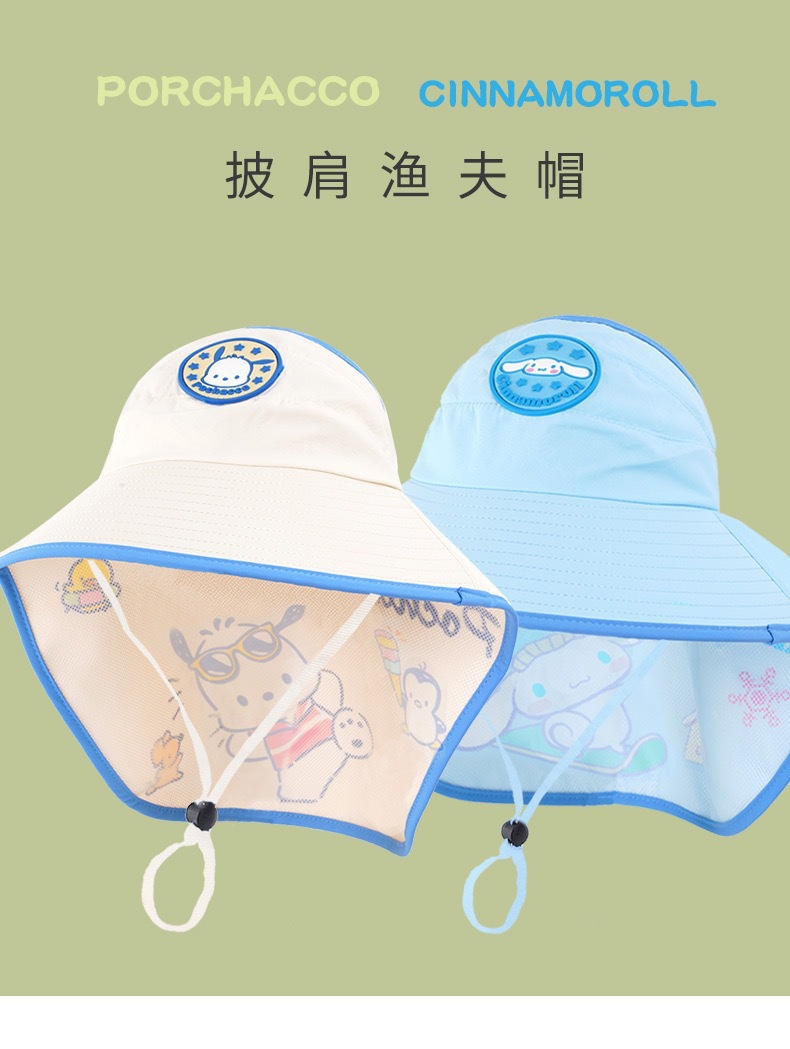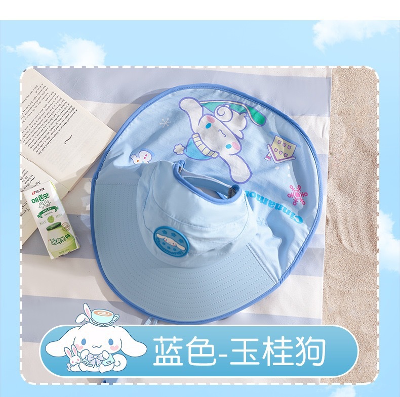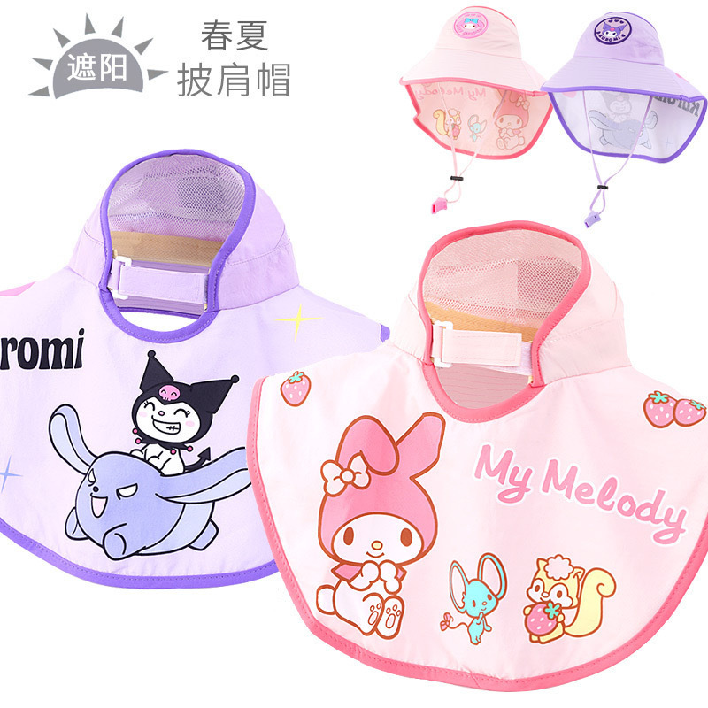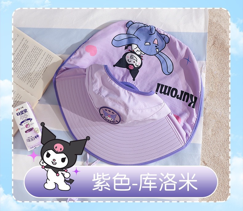 휘파람이 달린 새로운 어린이 쿠로미 자외선 차단 모자, 자외선 차단 모자, Sanrio 모자, 숄, 속건성 차양스토어 가기