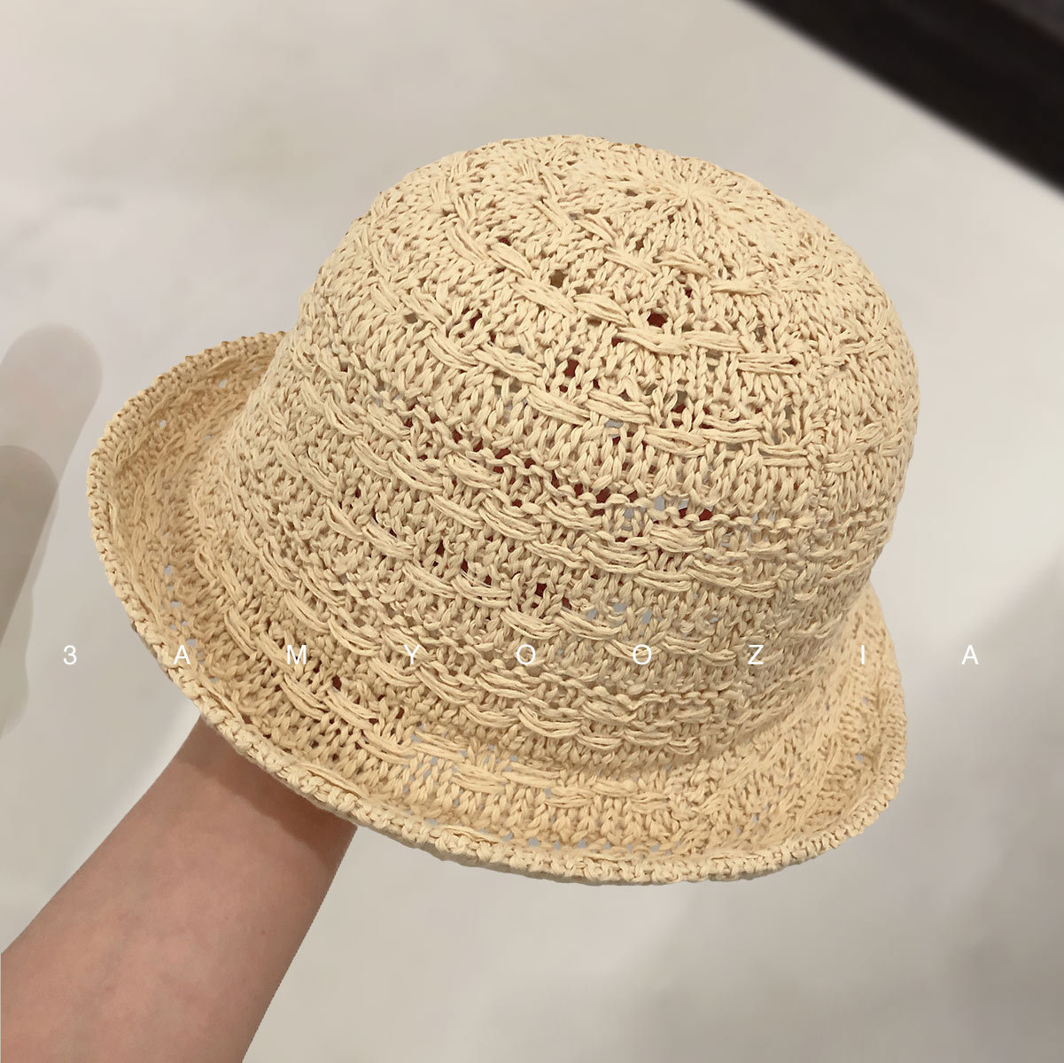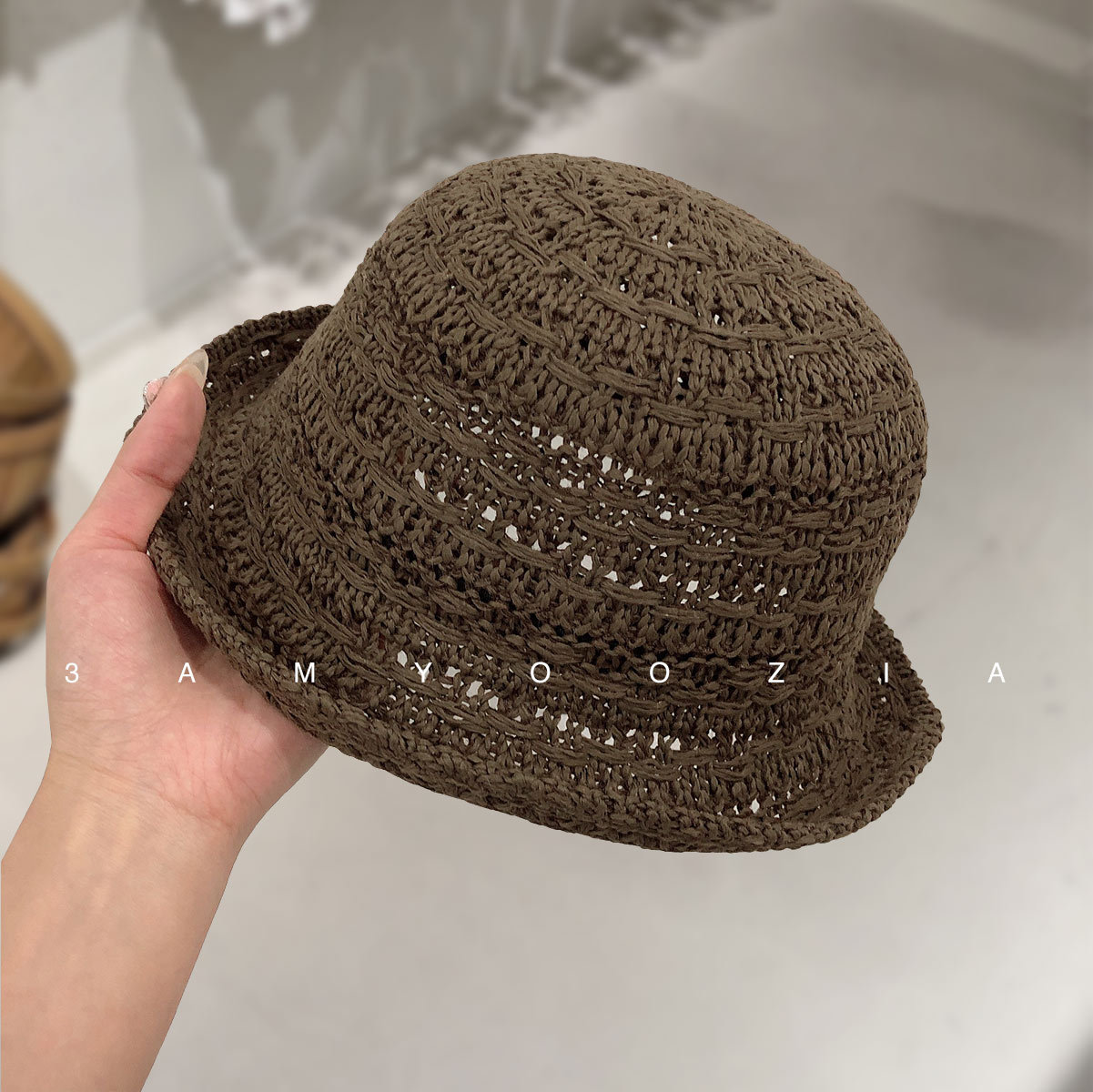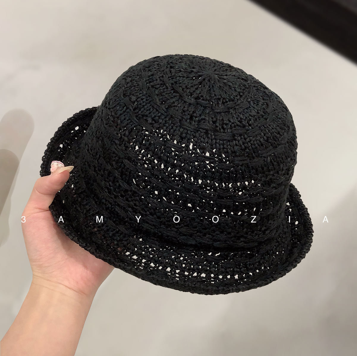 韩国帽子卷边草编镂空遮阳时尚显脸小2025夏季新款出游水桶渔夫帽
