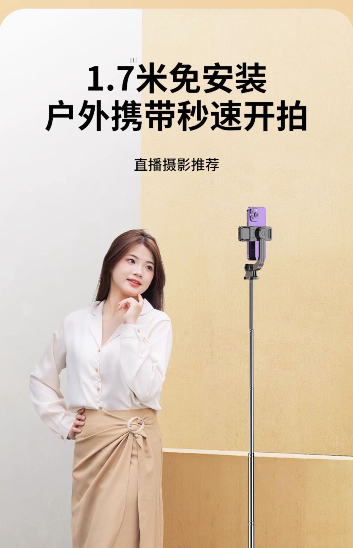• 1.7m 화이트 싱글 필라이트 모델 [통합 접이식 + 듀플렉스 안정 삼각대 지지대] + 15m 블루투스 리모컨