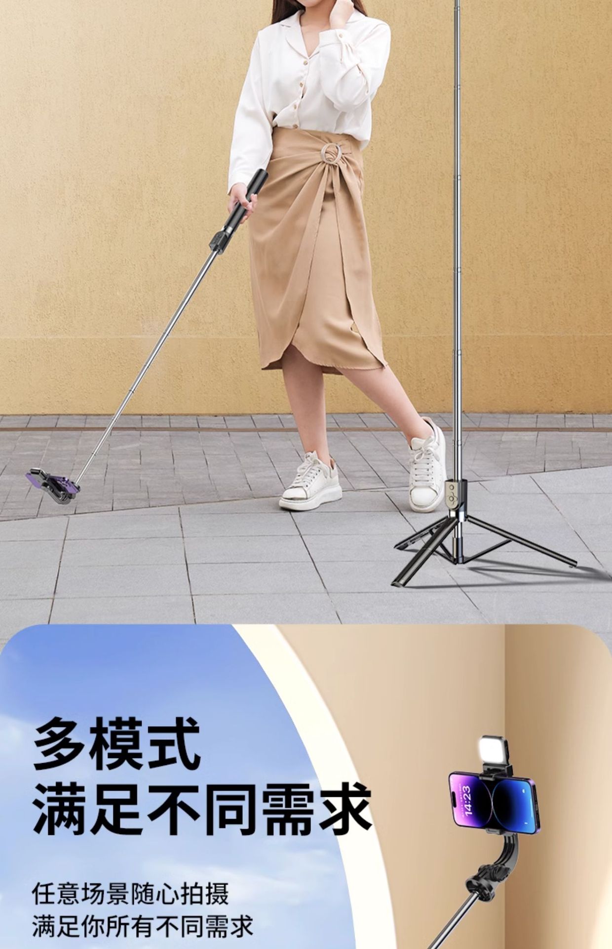 • 1.3m 화이트 듀얼 필인 라이트 모델 [통합 접이식 + 듀플렉스 안정적인 3각 지지대] + 15m 블루투스 리모컨