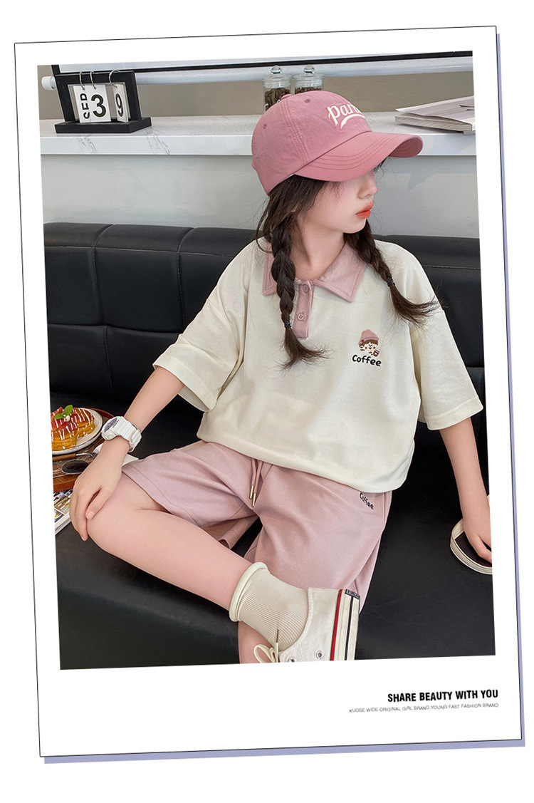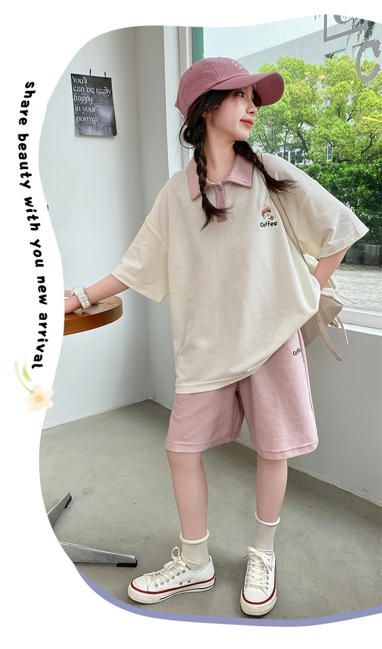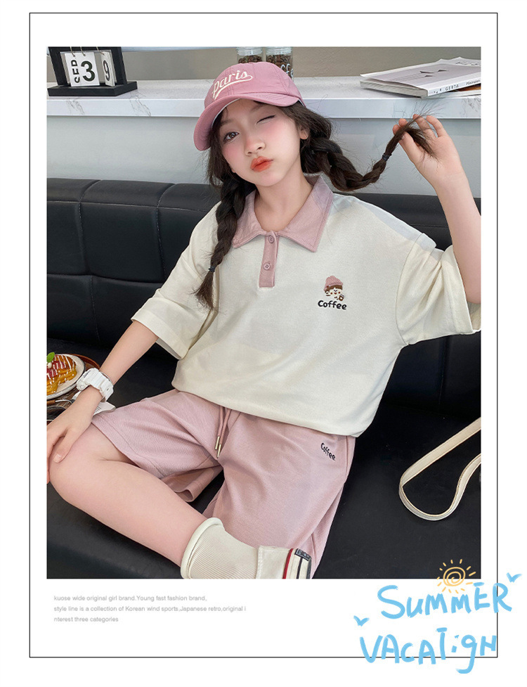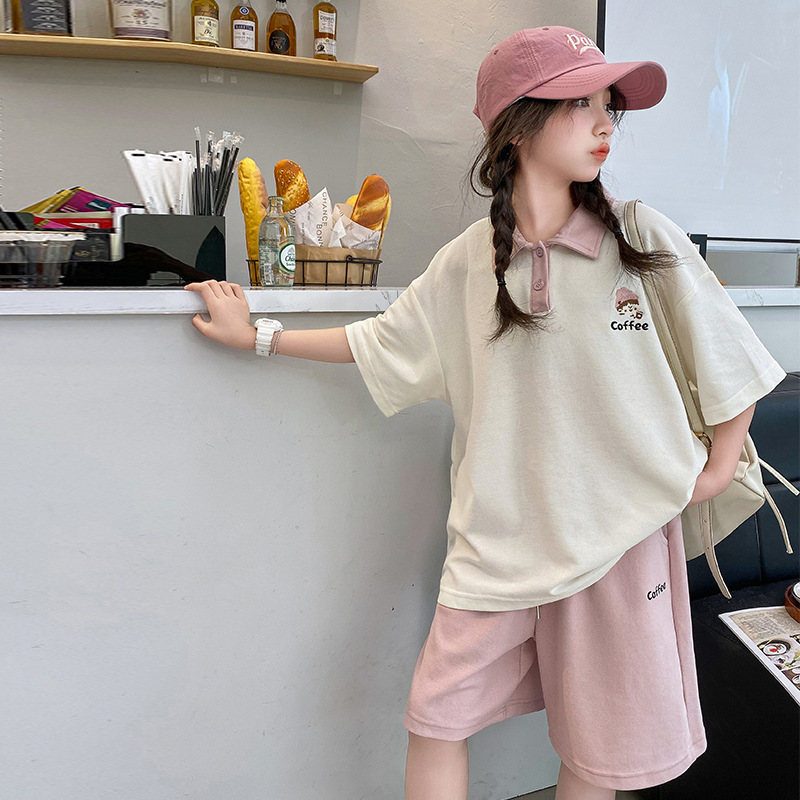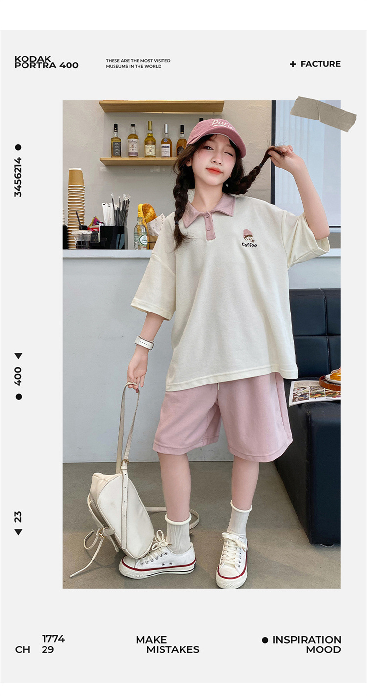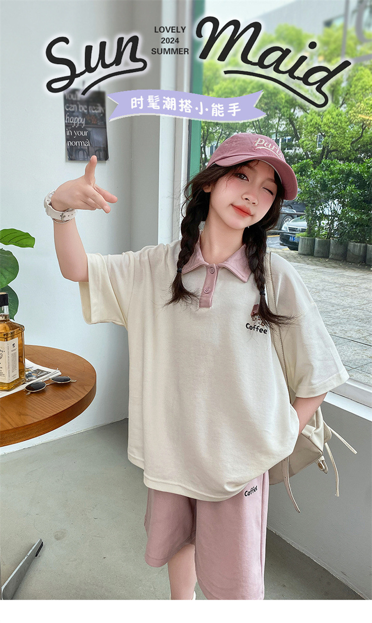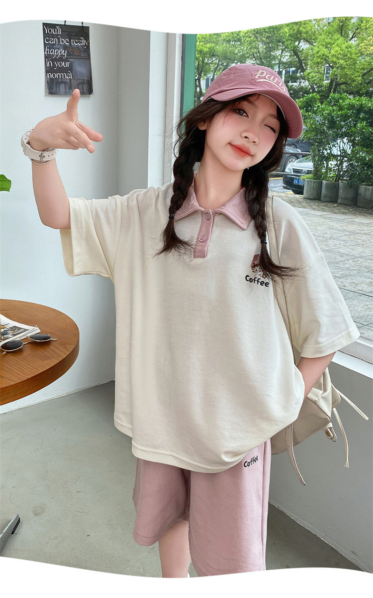 여자 여름 대학 스타일 폴로 셔츠 2025 새로운 스타일 여자 느슨한 반팔 스포츠 반바지 큰 어린이 정장스토어 가기