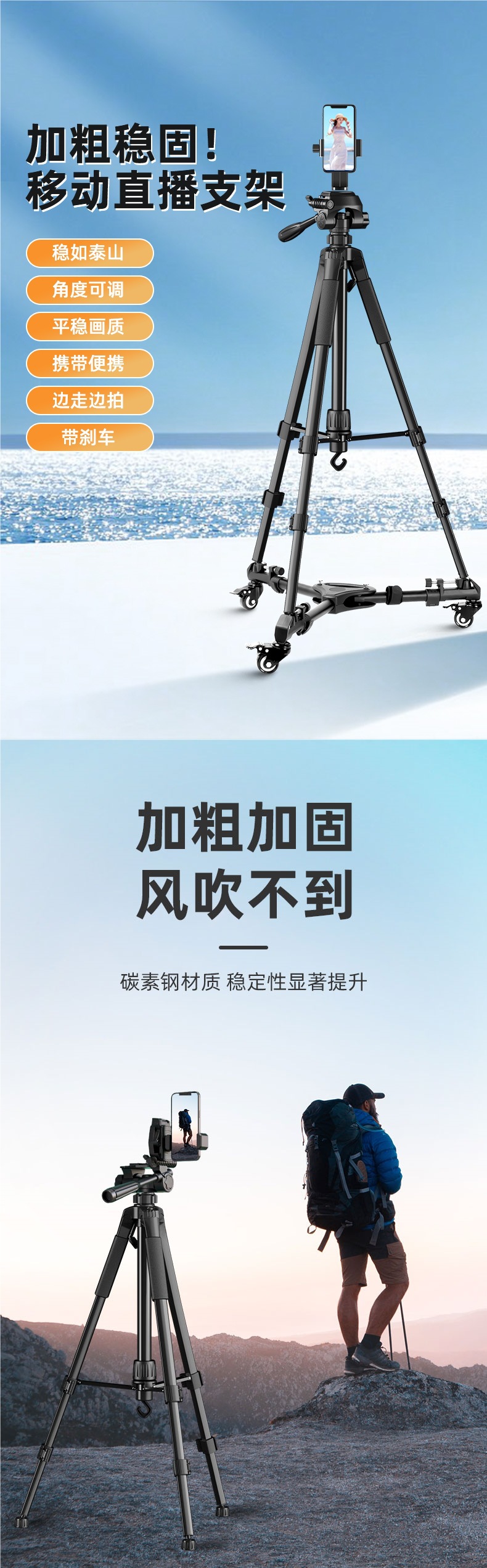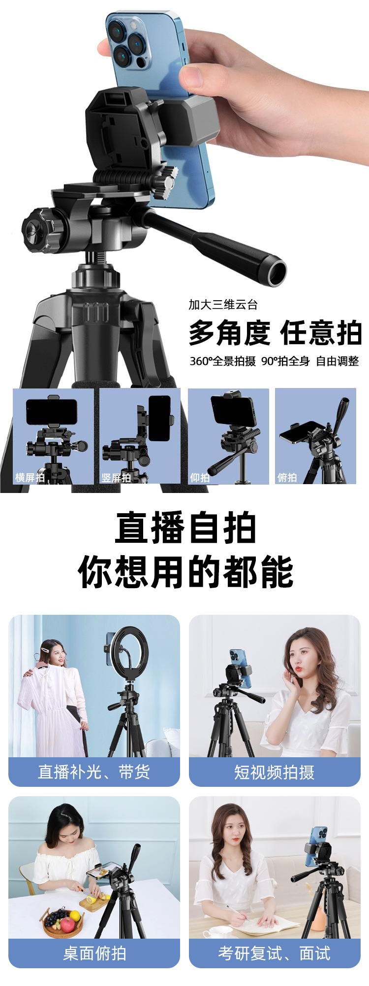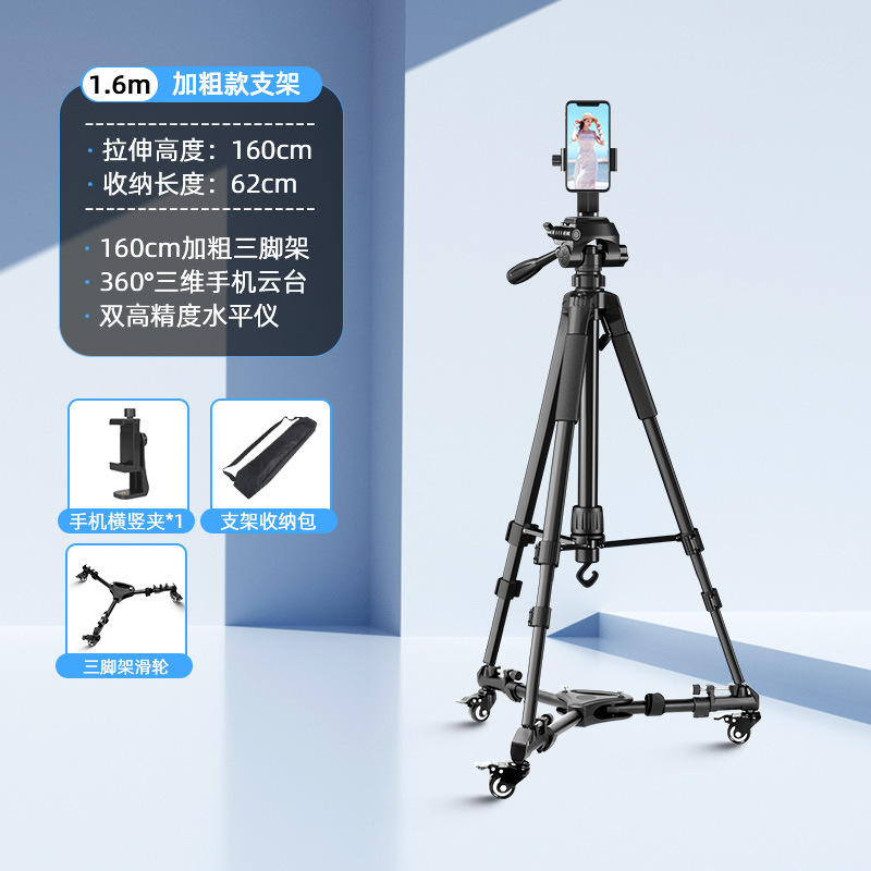 삼각대 풀리 휴대폰 라이브 방송 스탠드 다기능 모바일 촬영 셀카 두껍고 안정적인 비디오 촬영을 위한 지지대