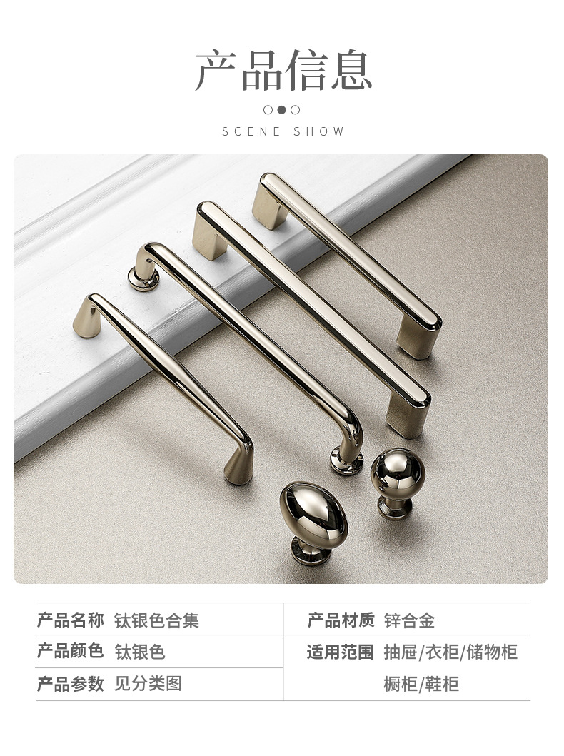 프렌치 라이트 럭셔리 하이 엔드 티타늄 실버 캐비닛 옷장 도어 핸들 서랍 커피 테이블 TV 캐비닛 가구 핸들