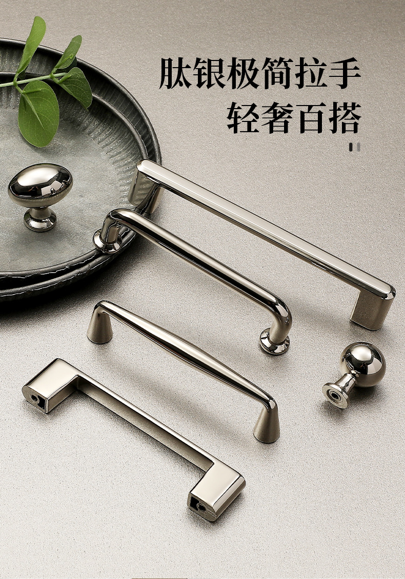 프렌치 라이트 럭셔리 하이 엔드 티타늄 실버 캐비닛 옷장 도어 핸들 서랍 커피 테이블 TV 캐비닛 가구 핸들스토어 가기