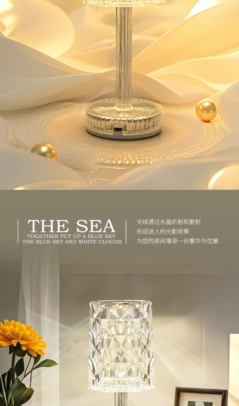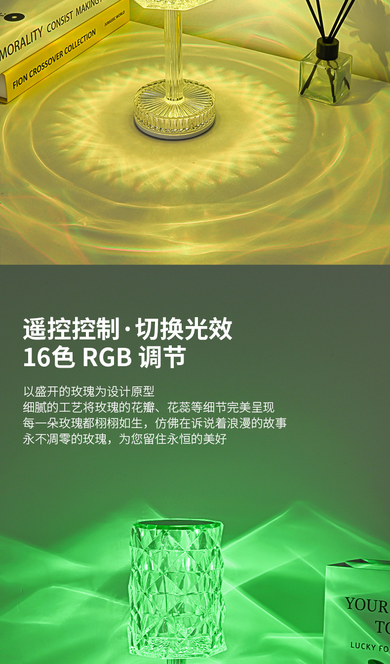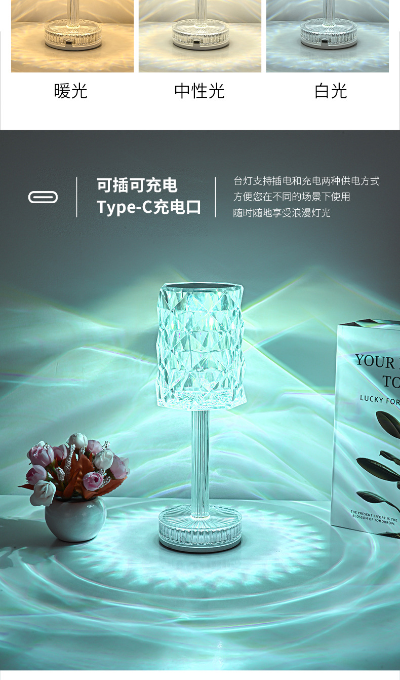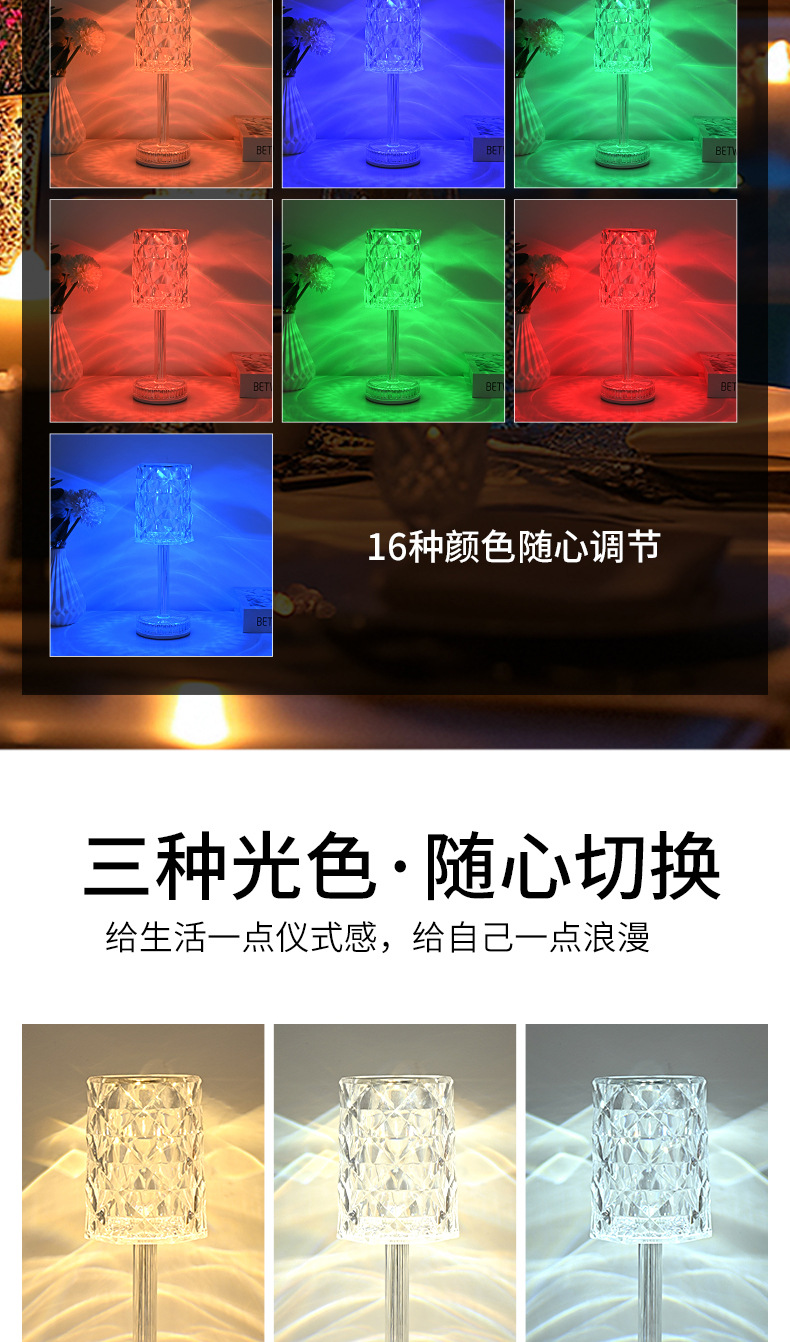 국경을 넘어 인기 있는 테이블 램프, 마스터 침실 수면용 침대 옆 램프, 장미꽃 로맨틱 분위기 연출, 인터넷 인기 충전식 소형 야간 조명