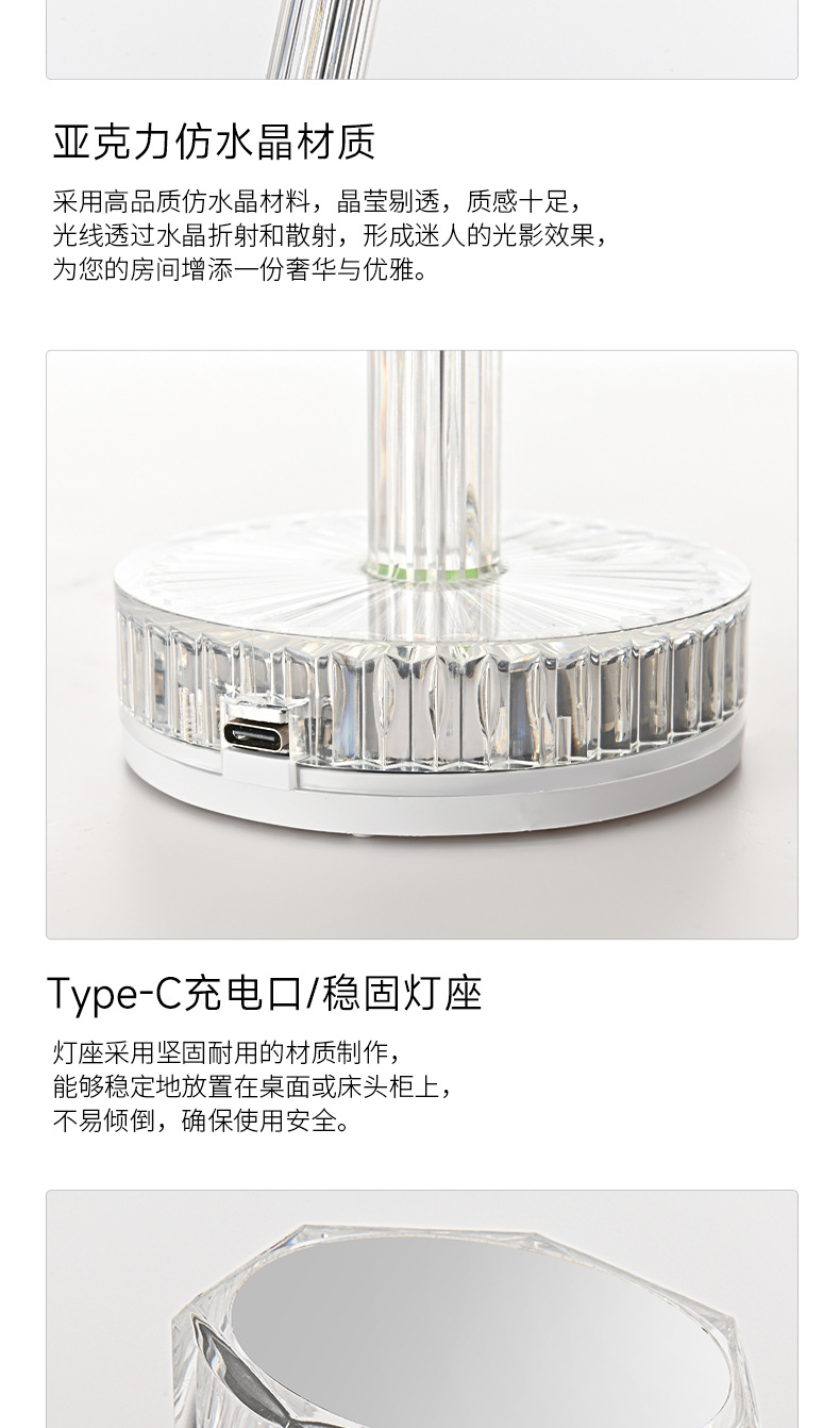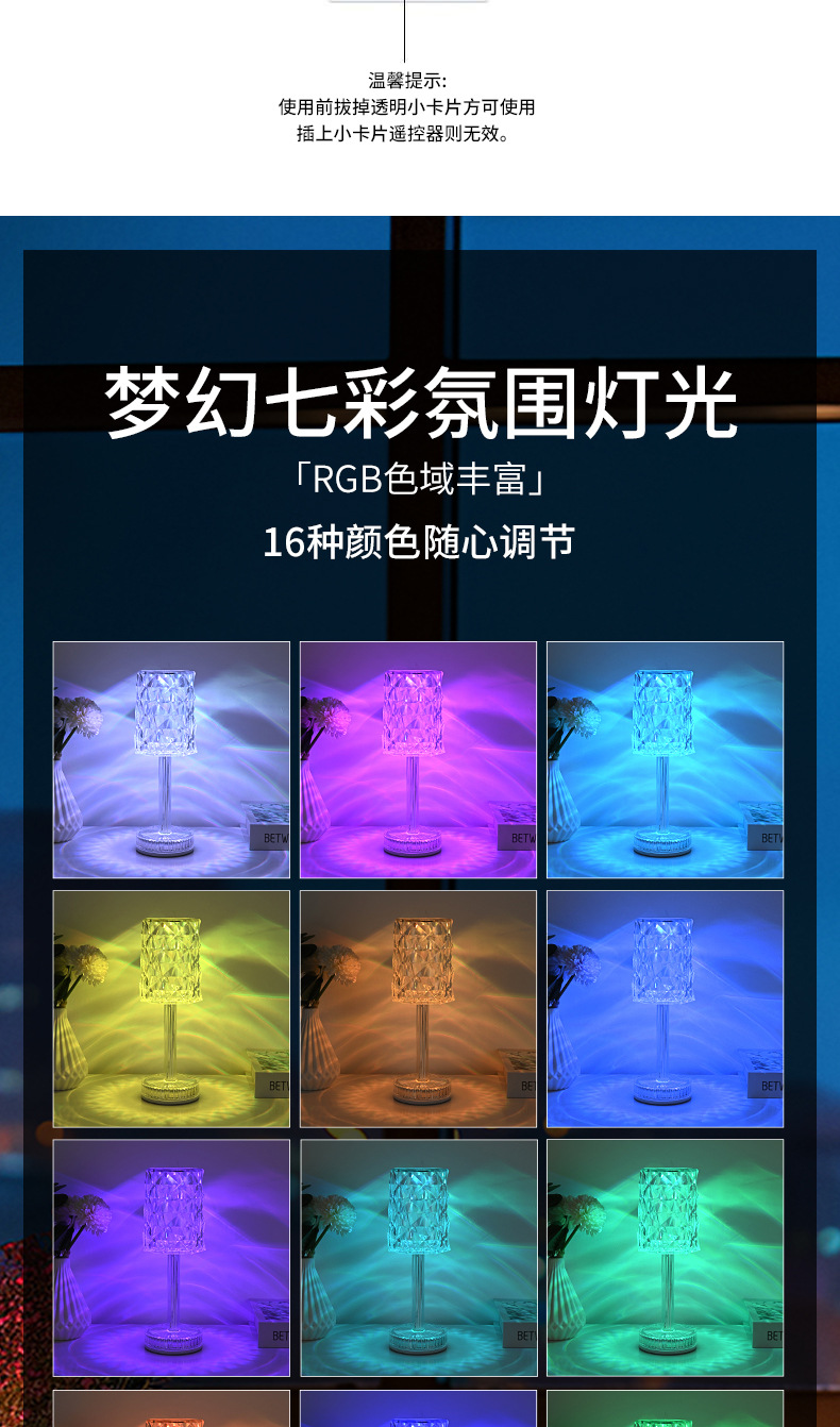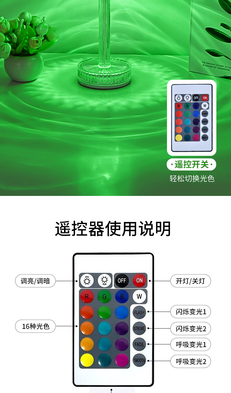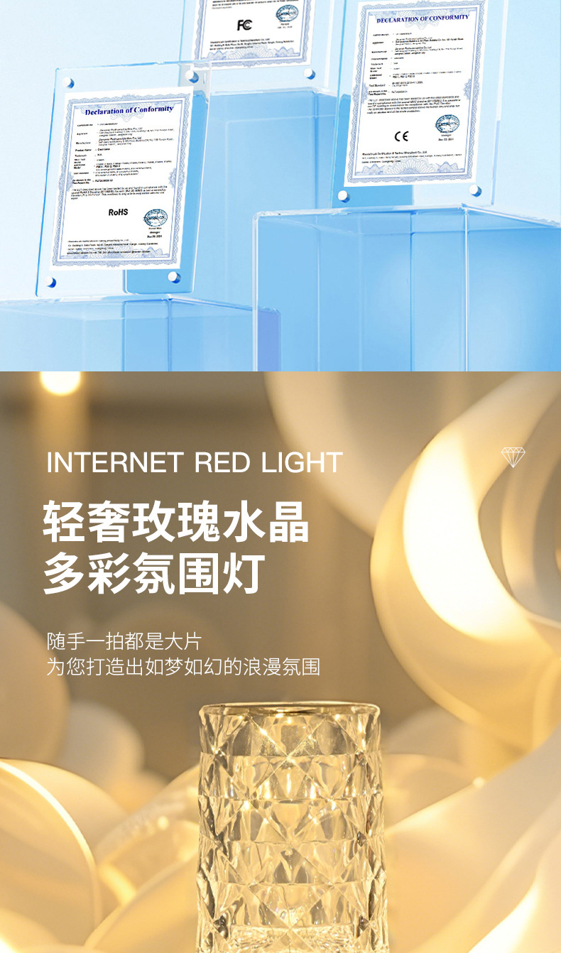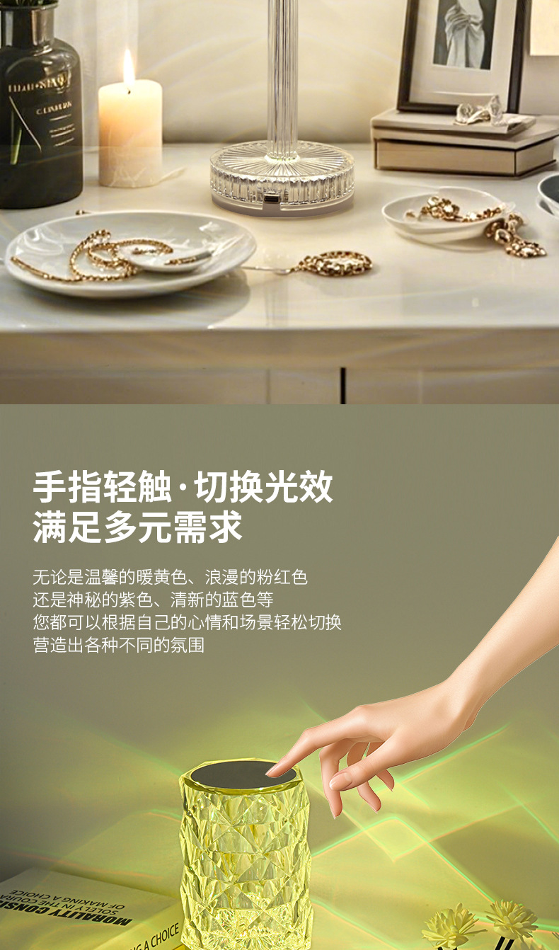 국경을 넘어 인기 있는 테이블 램프, 마스터 침실 수면용 침대 옆 램프, 장미꽃 로맨틱 분위기 연출, 인터넷 인기 충전식 소형 야간 조명