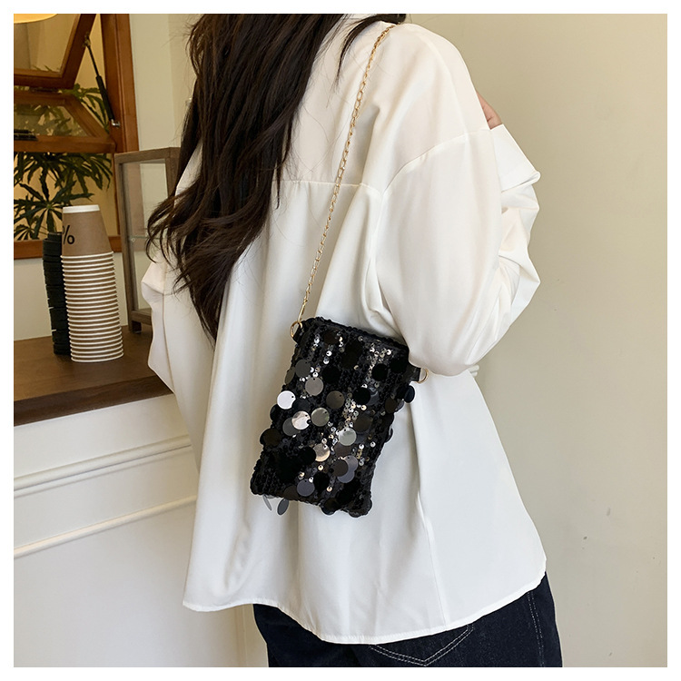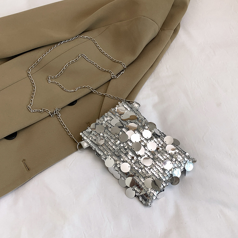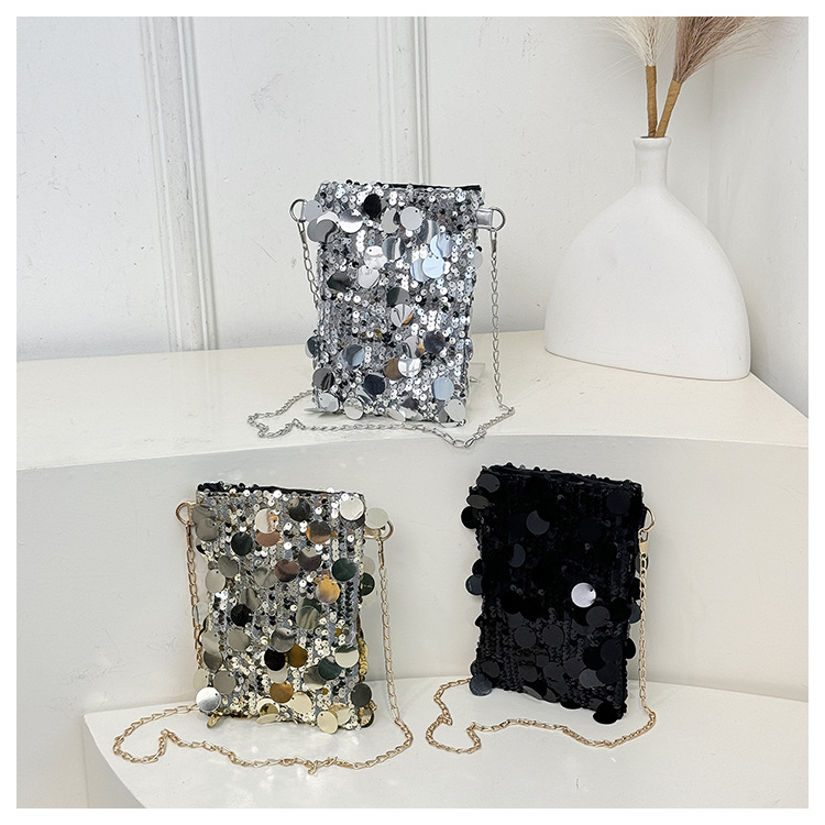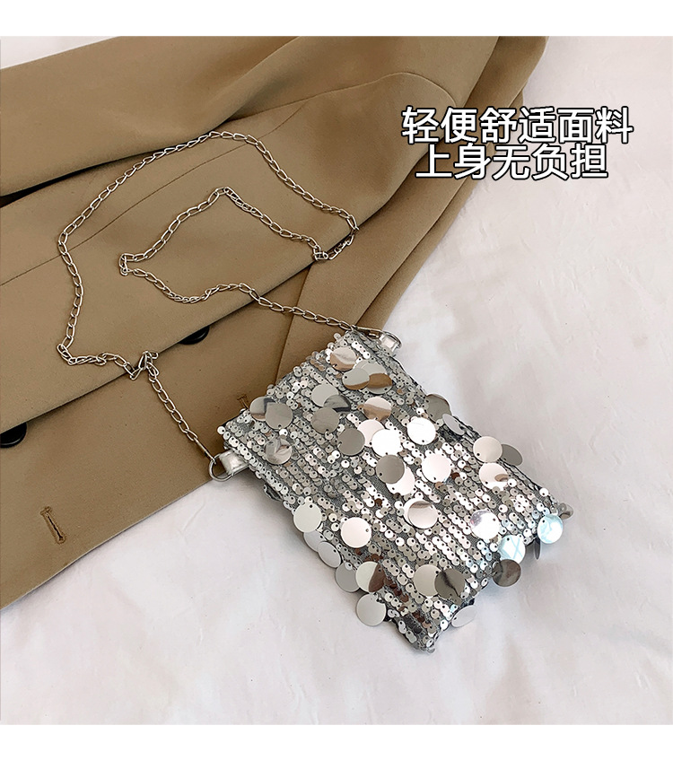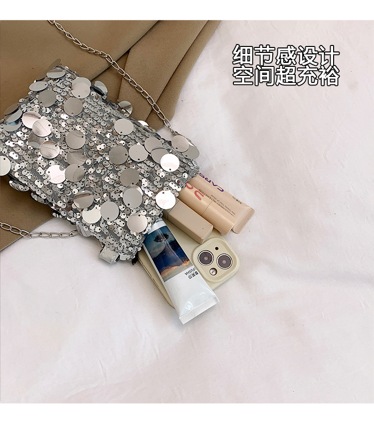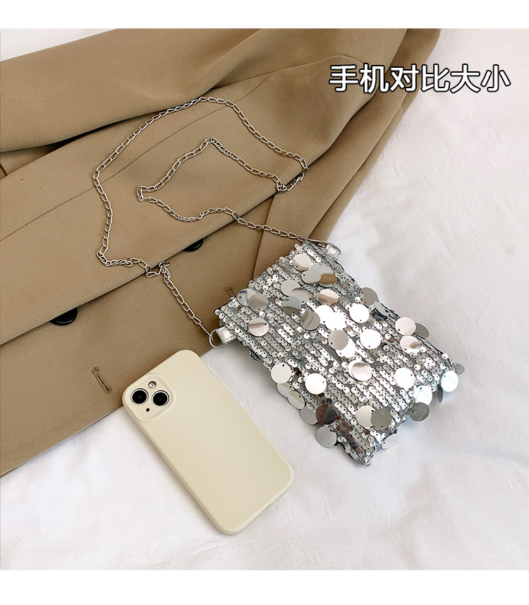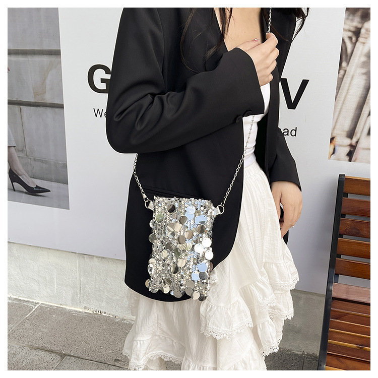 2025 여름 패션 인기 스팽글 휴대폰 소형 사각형 가방 여성 틈새 스타일 숄더백 미니 체인 크로스 바디 백