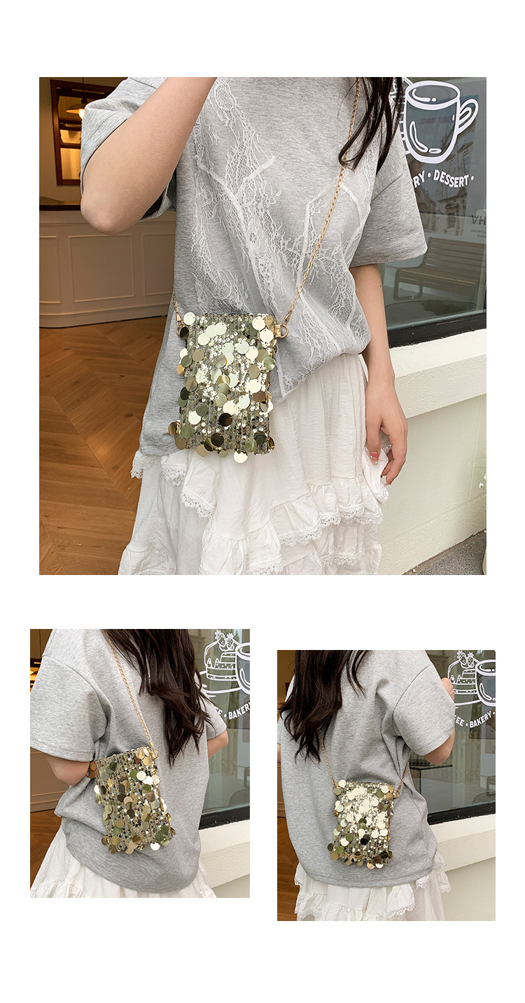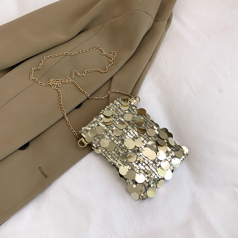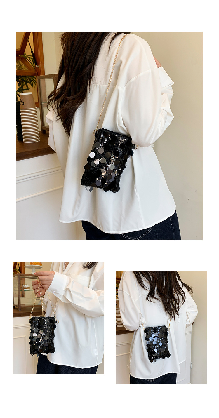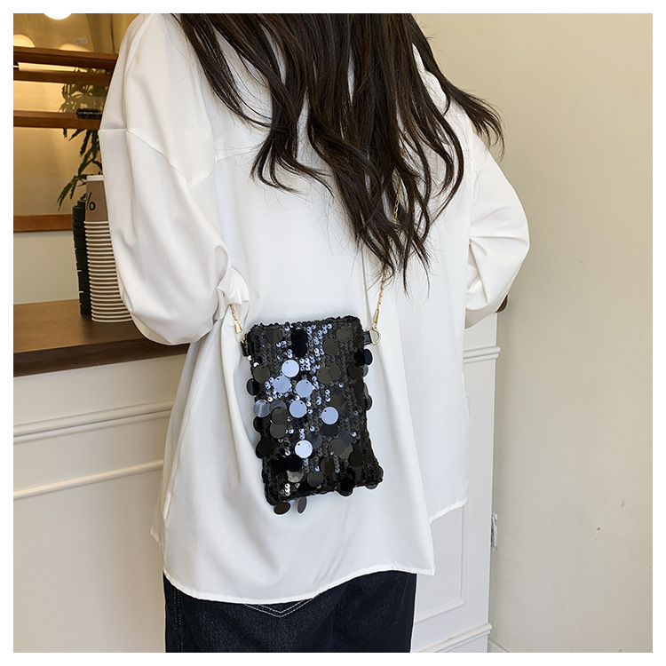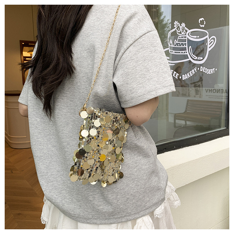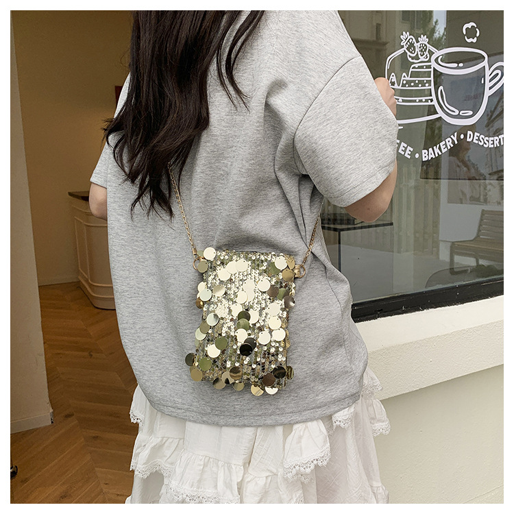 2025 여름 패션 인기 스팽글 휴대폰 소형 사각형 가방 여성 틈새 스타일 숄더백 미니 체인 크로스 바디 백
