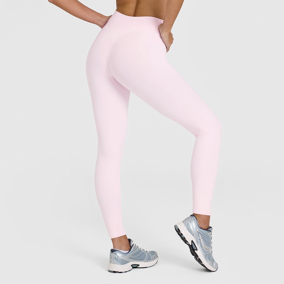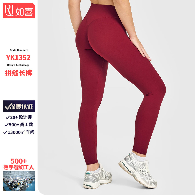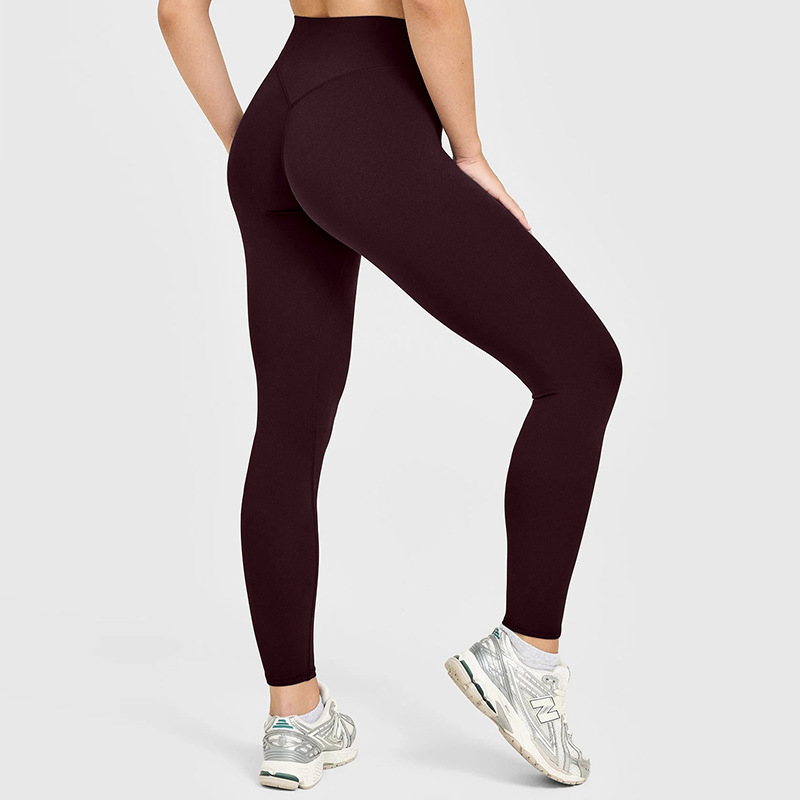 유럽풍 하이웨이스트 누드감 요가 팬츠 무봉제 라인 복부 보정 힙업 타이트 팬츠 야외 스포츠 피트니스 롱 팬츠 여성용스토어 가기