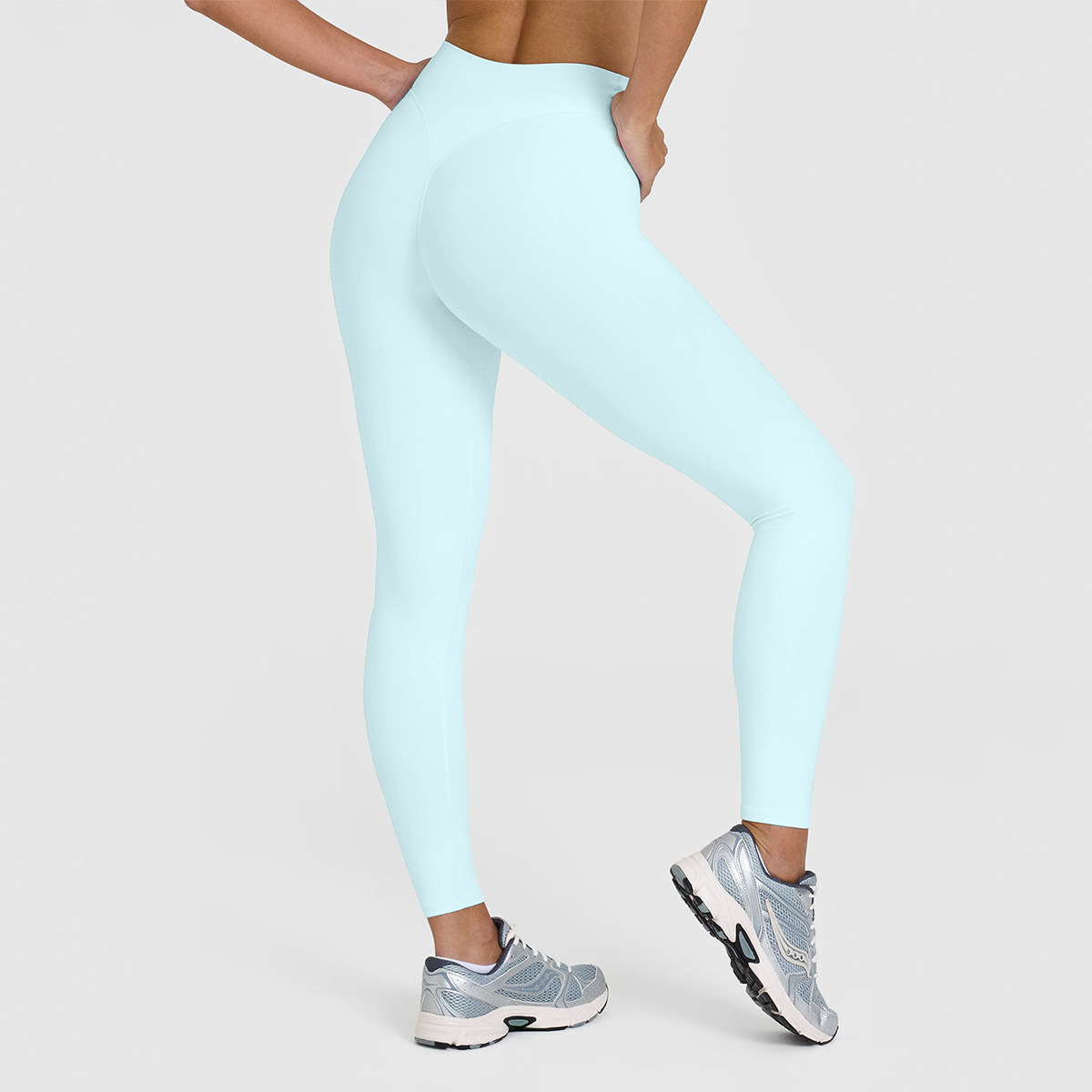 유럽풍 하이웨이스트 누드감 요가 팬츠 무봉제 라인 복부 보정 힙업 타이트 팬츠 야외 스포츠 피트니스 롱 팬츠 여성용