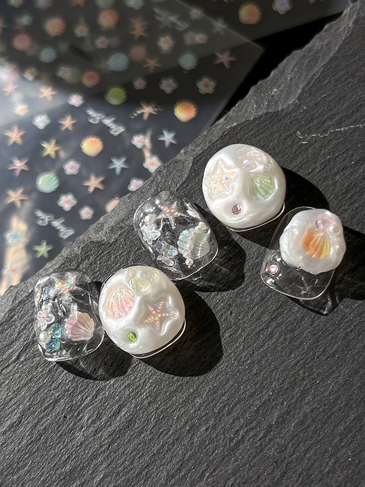 YITU 개미 그림 쉘 라이트 쉘 네일 아트 스티커 다채로운 귀여운 플래시 불가사리 사이버 레드 장식 스티커 YT6032스토어 가기