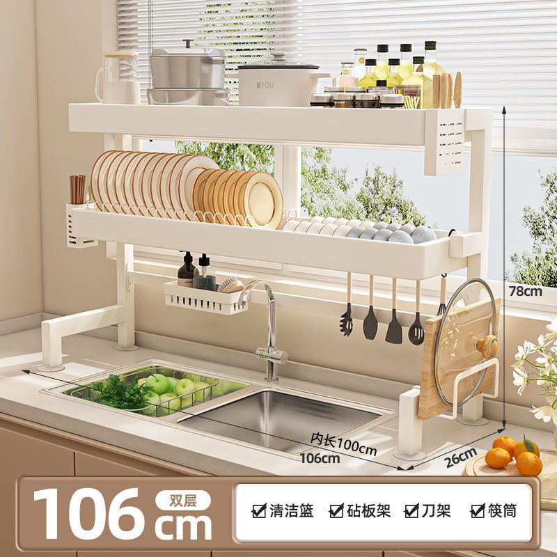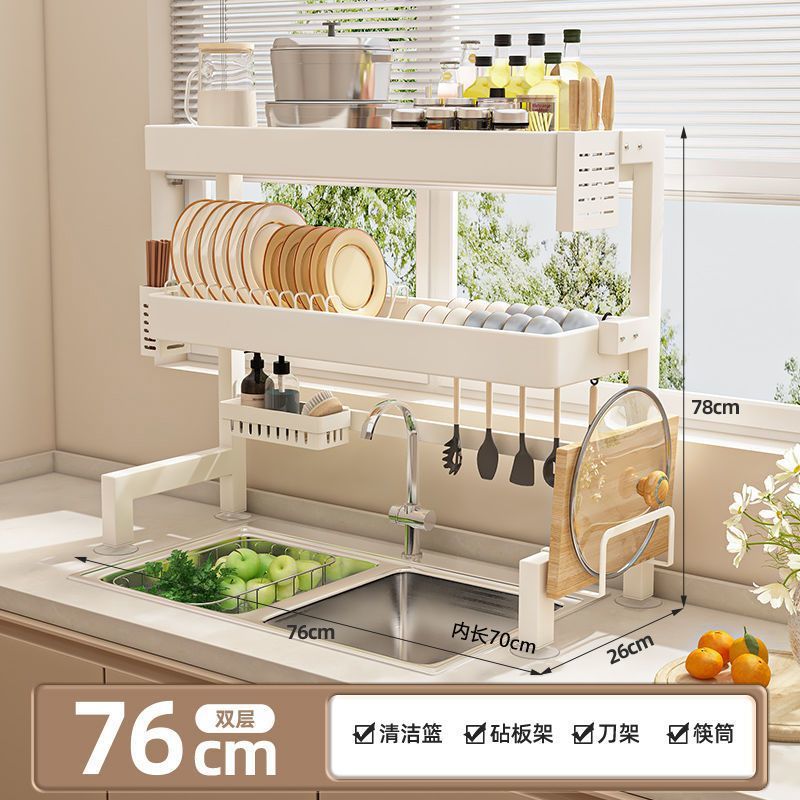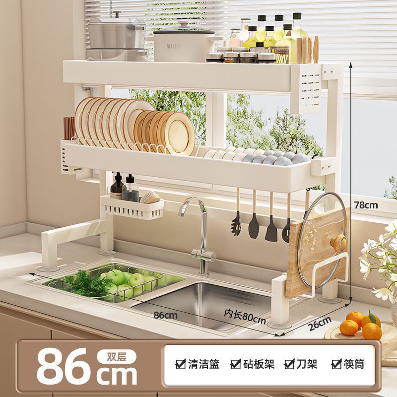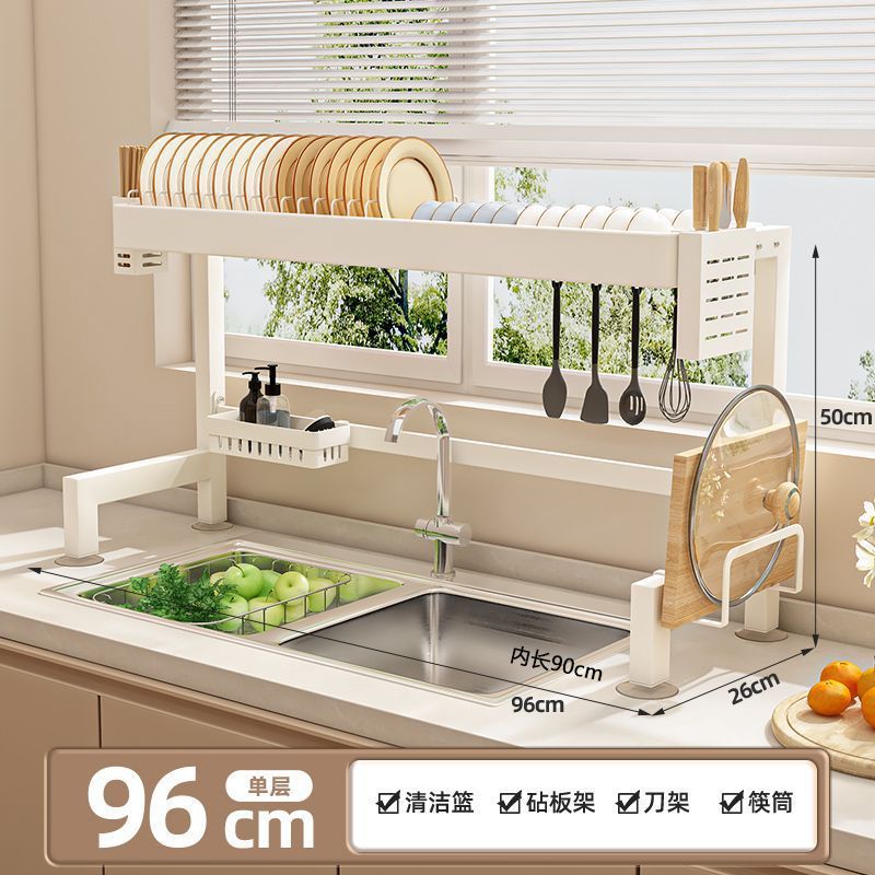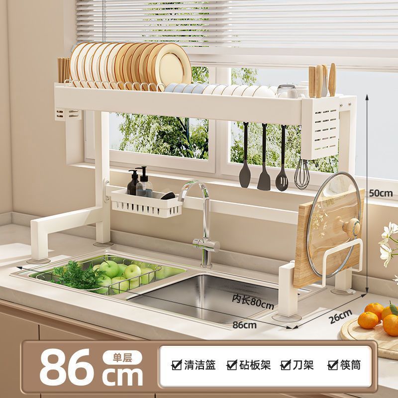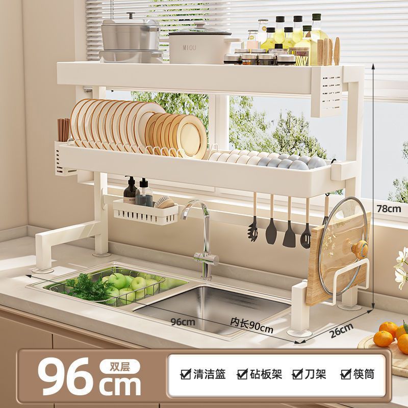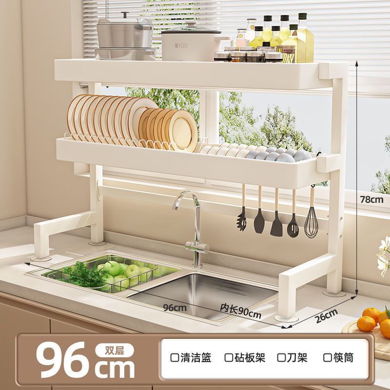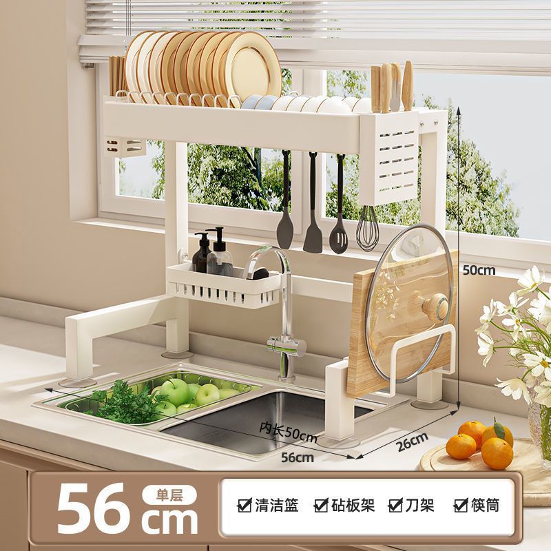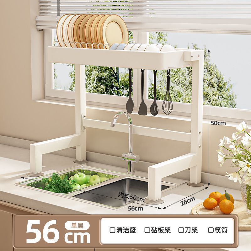주방 물 저장 랙 크림 윈드 카운터 탑 다기능 식기 세척 트레이 드레인 랙 두꺼운 접시 랙 국경스토어 가기