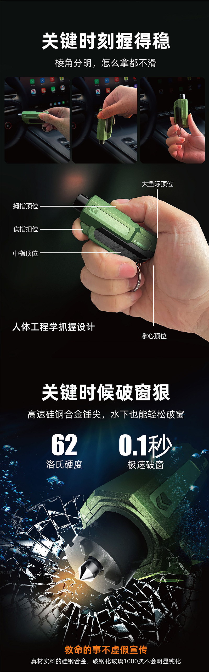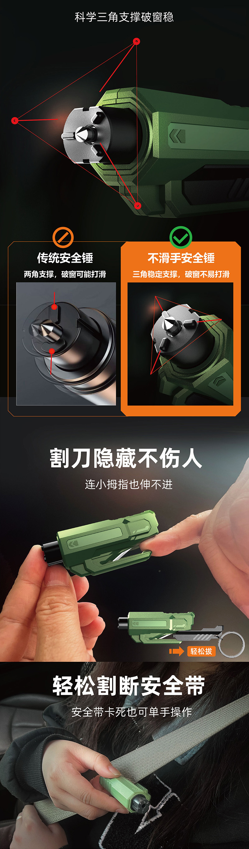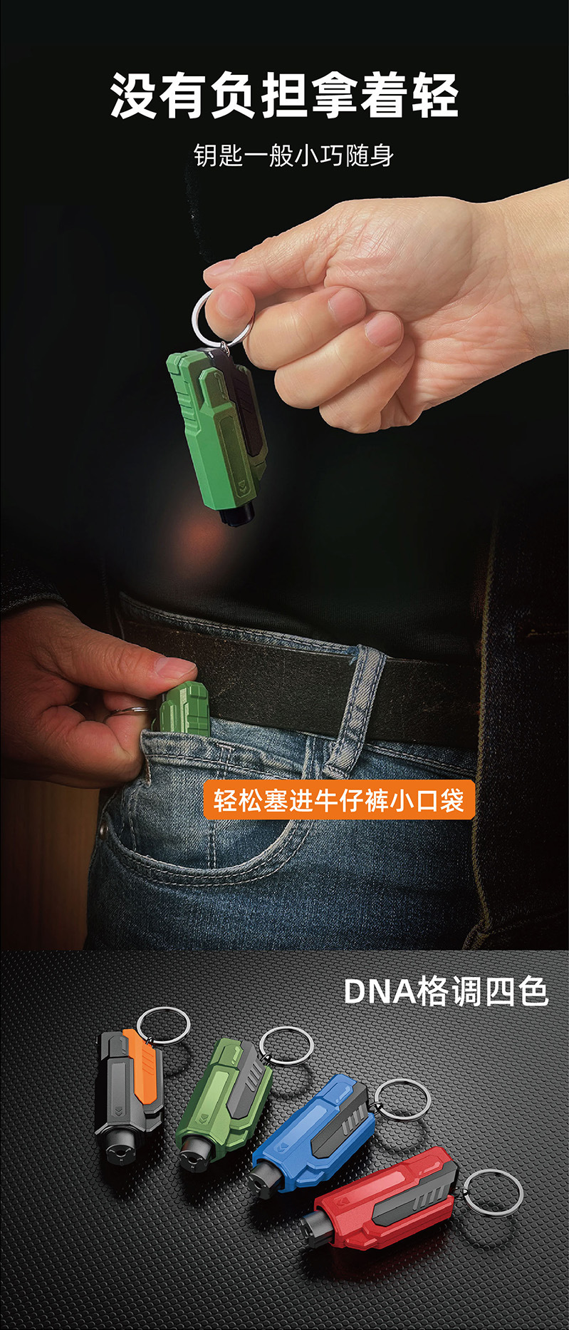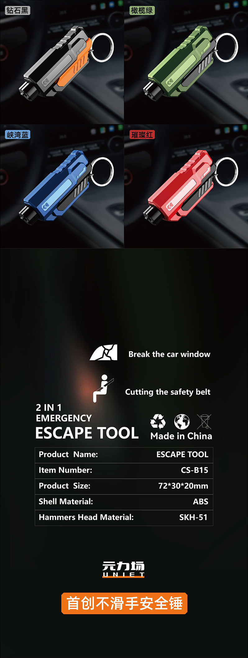 产品功能:破窗器/安全带割刀/钥匙扣