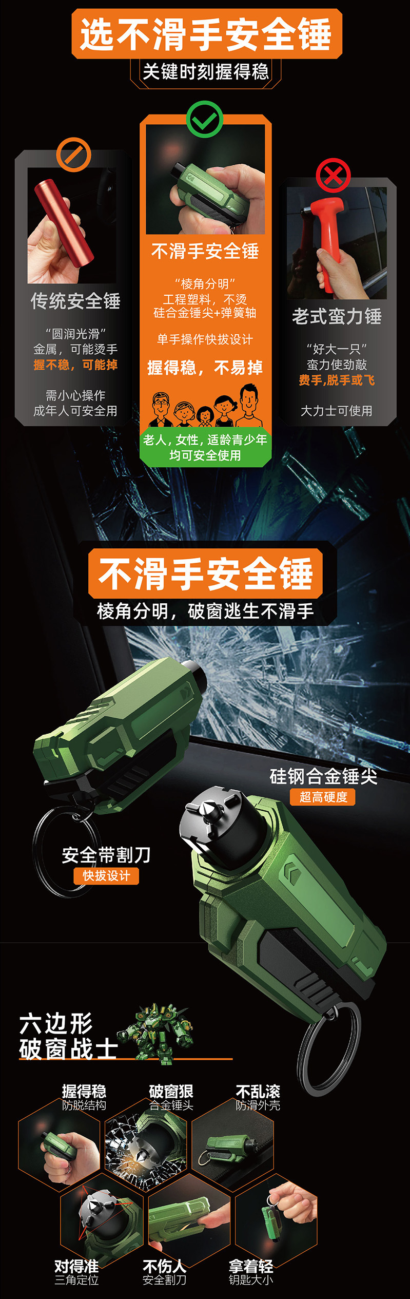 破窗参数:破窗针冲击力≥120N/破窗针硬度HRC260