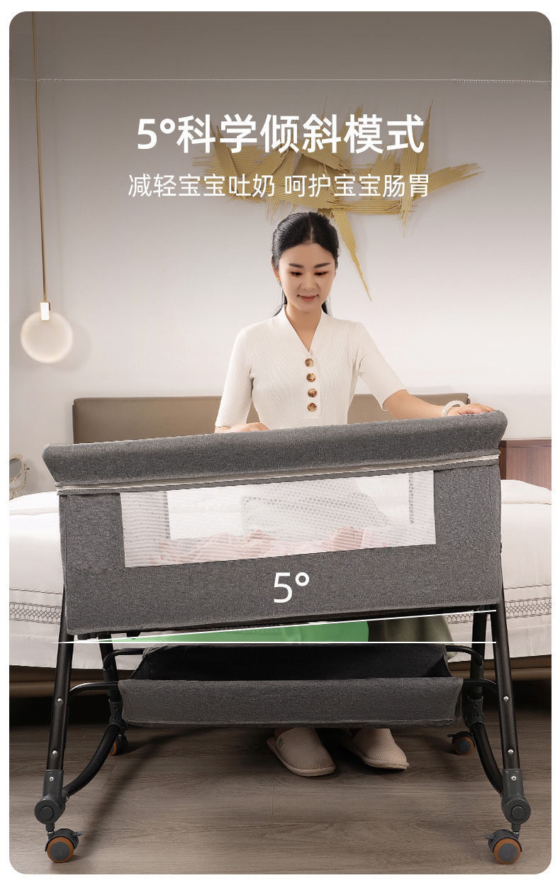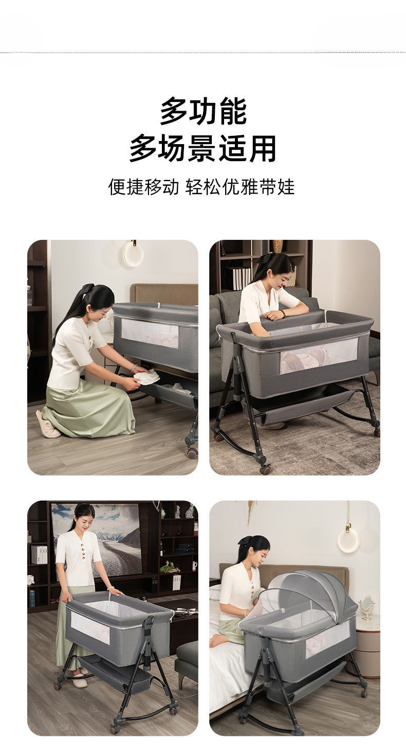 다기능 유아용 침대 휴대용 신생아 요람 침대 유럽 스타일의 아기 침대 접합 대형 침대 금속 북유럽 스타일스토어 가기